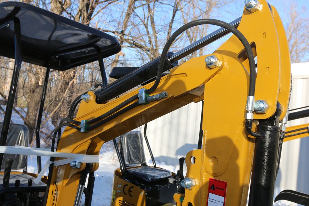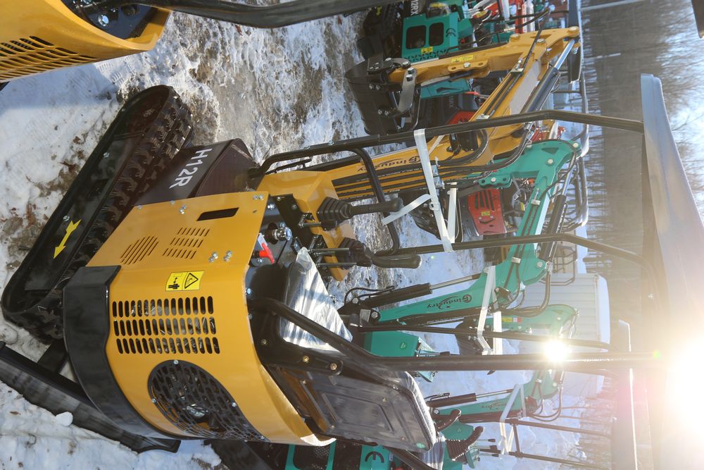 New 2026 CFG Industrial gas powered mini Excavator model H12R with 420cc gasoline engine with EPA, bucket, 4' long tracks, 36.5" wide base, 6" wide tracks, canopy, hydraulic boom & bucket controls, dozer blade. Hours reading less than 1 hour.