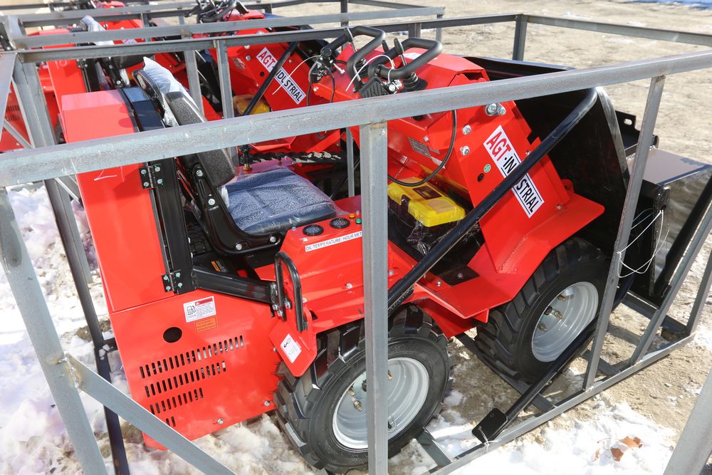 New 2026 AGT Industrial mini wheel loader model SDA-140W, RATO 15HP 8.6KW gasoline engine with bucket. Hours reading less than one hour.