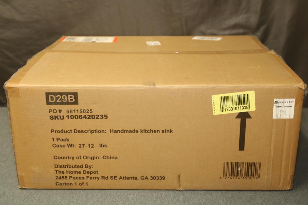 Glacier Bay 25 Inch Drop-In Single Bowl 18 Gauge Gunmetal Black Stainless Steel Kitchen Sink with Black Spring Neck Faucet (Model ACS2522A1T). This item includes a durable stainless steel construction with a gunmetal black finish and comes with a matching black spring neck faucet. Pickup only.