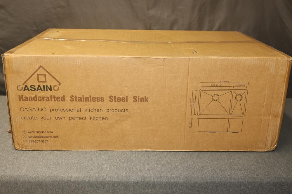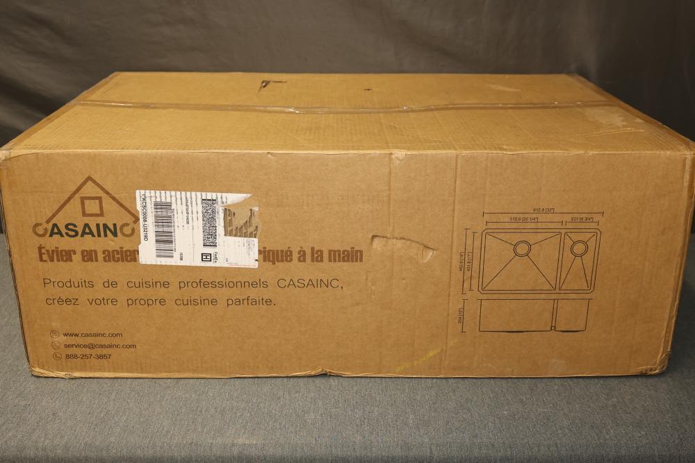 Casainc 32 Inch Undermount Double Basin 16 Gauge Stainless Steel Kit Sink with Bottom Grids (Model KCSC0008-U32191). The kit includes the sink, bottom grids, drains, and installation components. Made from durable 16-gauge stainless steel, it features an undermount design for a streamlined look. Pickup only.