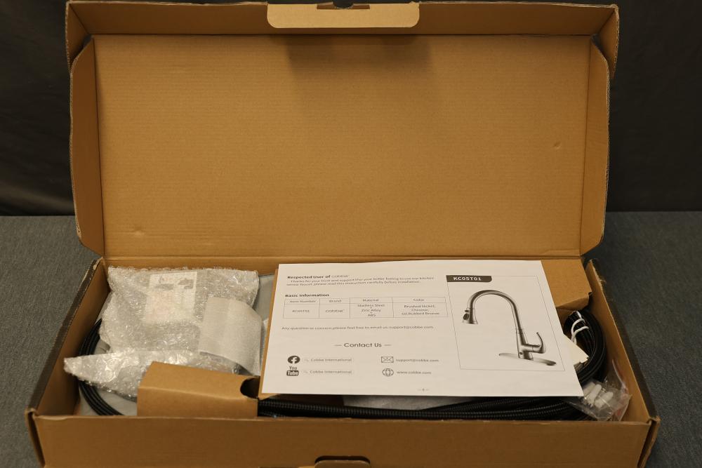 Cobbe Gooseneck Single-Handle Pull Down Sprayer Kitchen Faucet with Deckplate Pull Out Sink Faucet in Oil Rubbed Bronze (Model KC05T01). Item includes brushed nickel and ABS material with an oil-rubbed bronze finish. Features a single-handle design and pull-down sprayer for ease of use. New in original packaging with all components included. Pickup only.