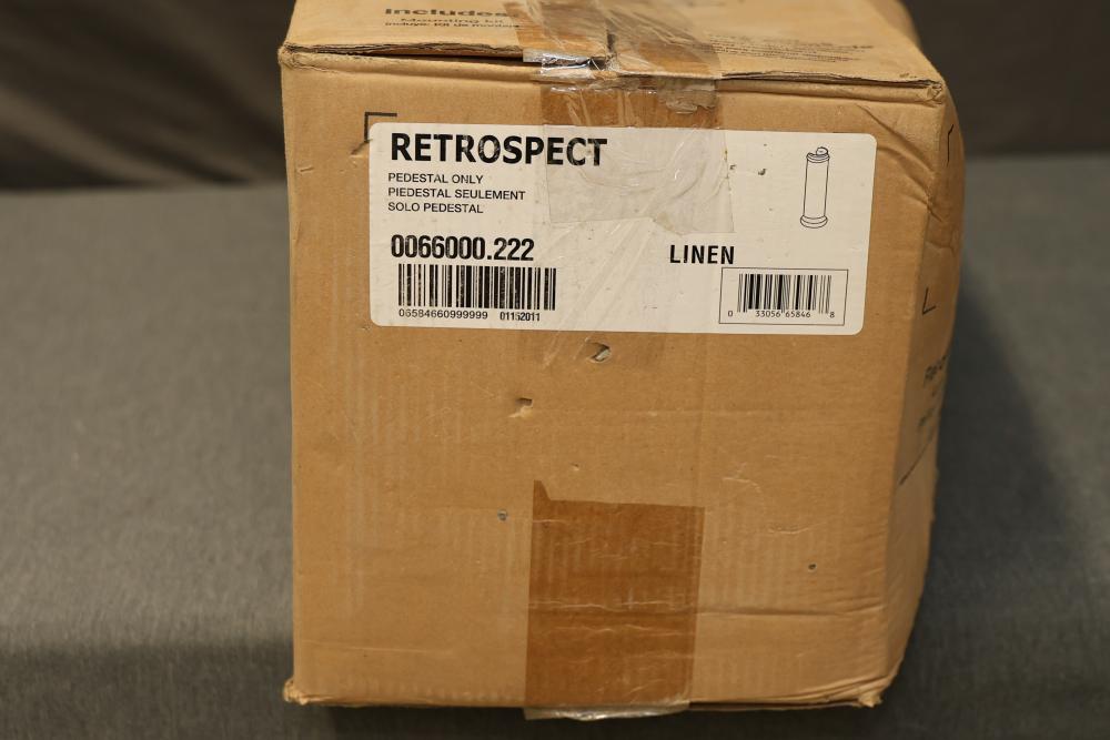 American Standard Retrospect Fireclay Traditional Linen Pedestal Sink Base, Measuring 28.25 Inches High, 9.875 Inches Wide, and 9.875 Inches Deep. Mounting Kit is not included. (Model 0066000.222). Pickup only.
