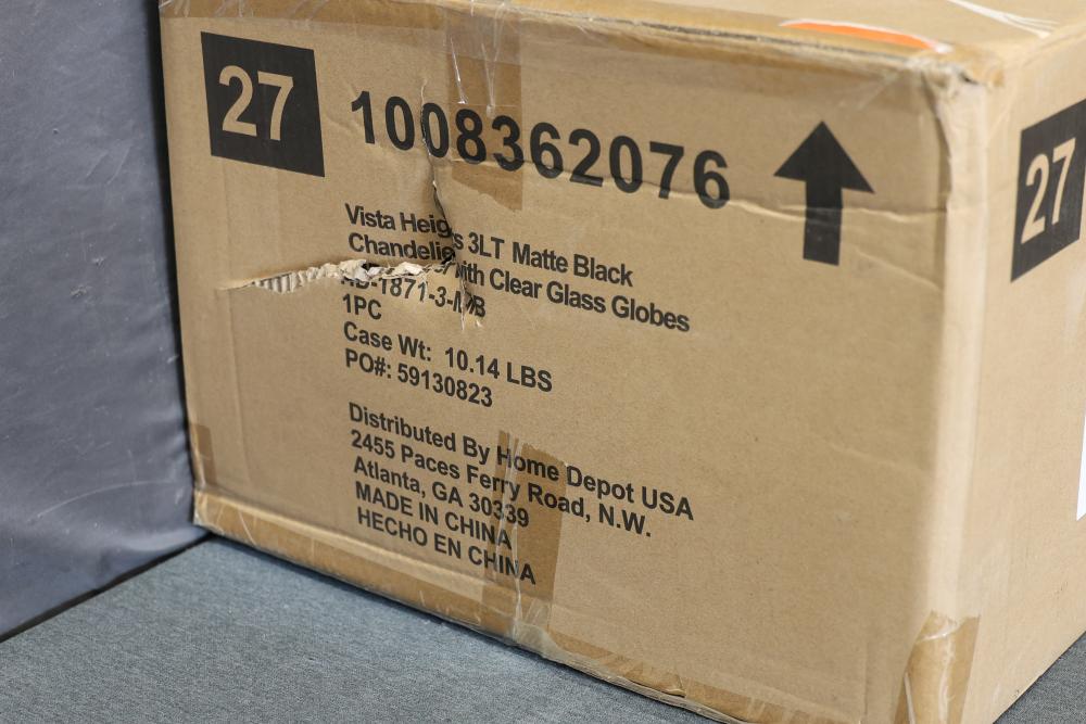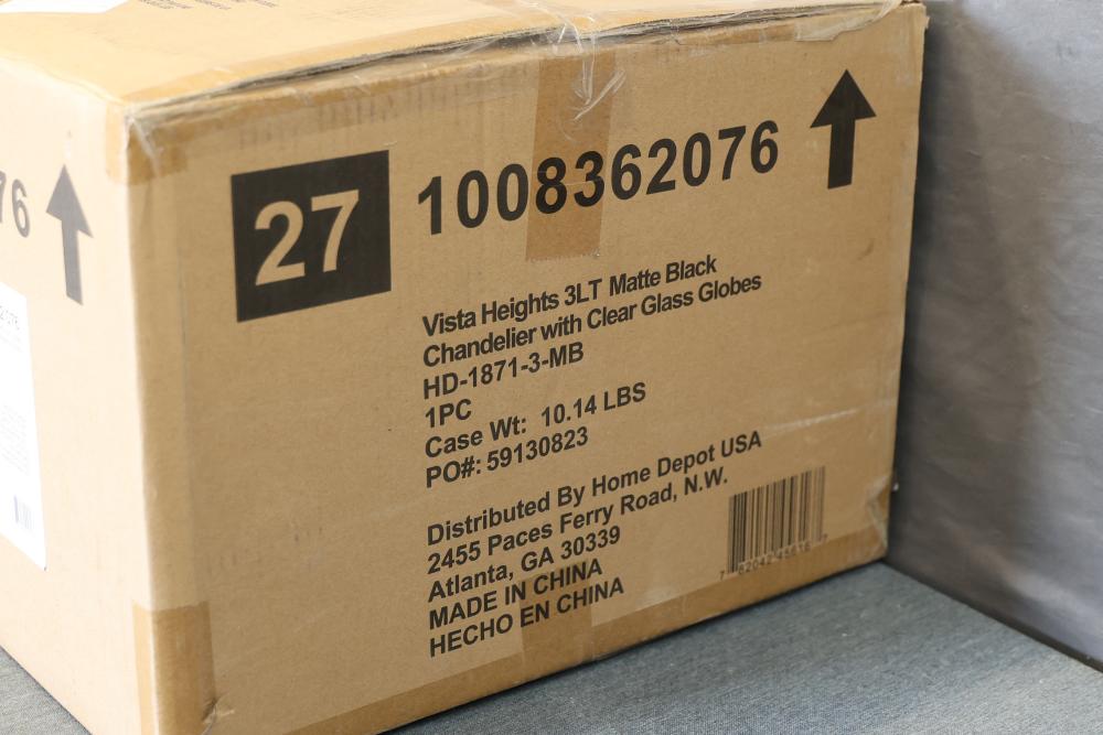Home Decorators Collection Vista Heights 3-Light Matte Black Globe Pendant with Opal White Glass (Model HD-1871-3-MB). New, in original packaging. Compatible with three max 60W E26 bulbs. Dimensions are 18.13 in x 18.13 in x 13.75 in (assembled). Pickup only.