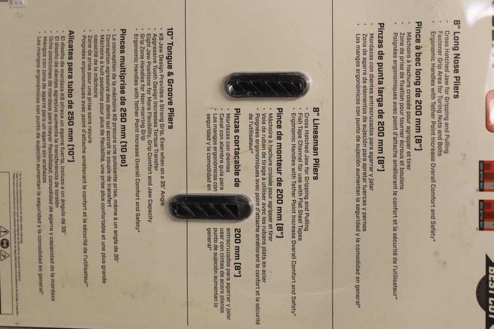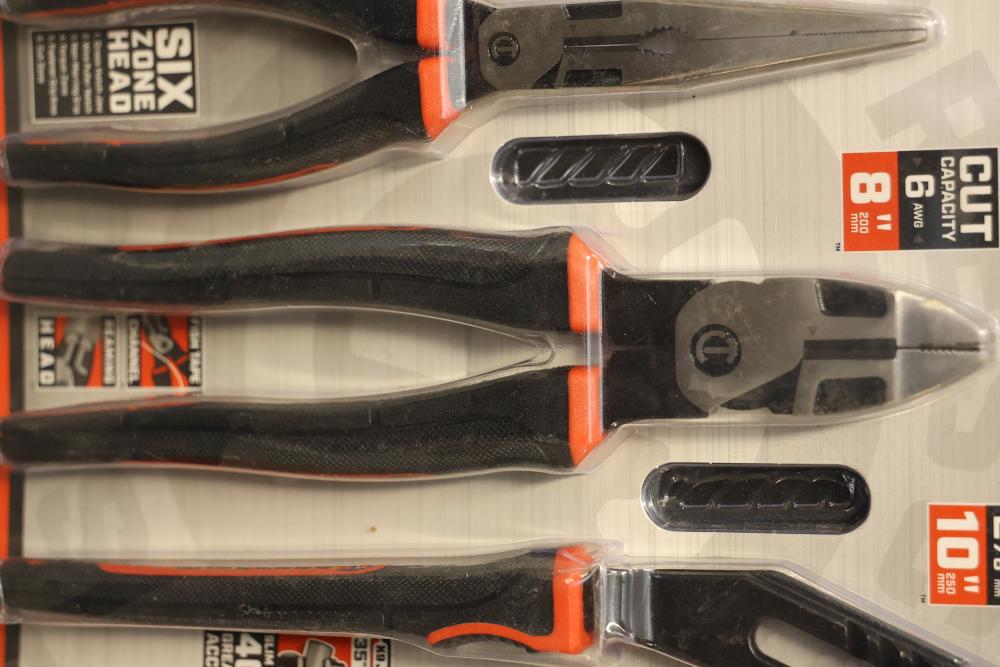 Crescent Z2 Mixed Dual Material High Leverage 3-Piece Plier Set (Model Z2SET3CG). Includes an 8-inch long nose plier, an 8-inch diagonal cutting plier, and a 10-inch tongue & groove plier. Features a six-zone head design, increased cutting capacity, and enhanced durability with ergonomic dual material grips. Pickup only.