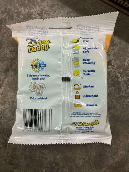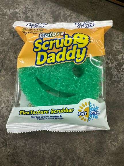 Scrub Daddy Color Sponges - Quantity of 10. Includes ten individual Scrub Daddy sponges with FlexTexture material that adjusts its texture based on water temperature. Odor-resistant and versatile for kitchen and household use. Each sponge is individually packaged. Pickup only.