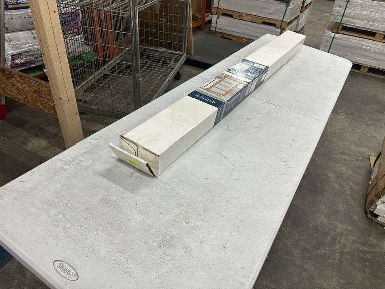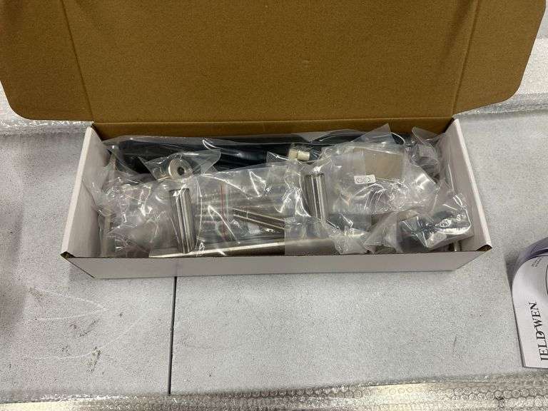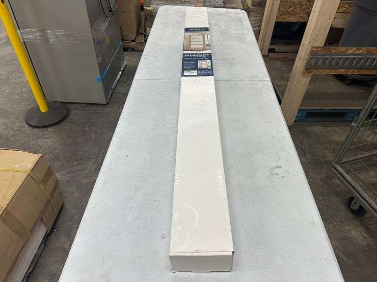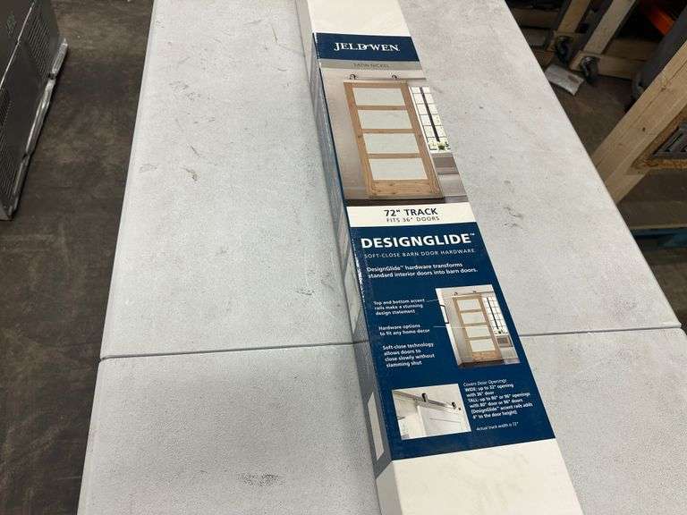 Jeld-Wen 72 Inch DesignGlide Satin Nickel Soft-Close Barn Door Sliding Door Hardware Kit (Model JW2245-000010). Includes hardware for barn door installation in a satin nickel finish, featuring a soft-close mechanism. Pickup only.