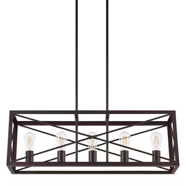 Home Decorators Collection Harwood 5-Light Interior Island Pendant in Royal Bronze Finish. Model HB3688-281. Designed for indoor use, this island pendant features a royal bronze finish and measures 32 inches W x 7 inches D x 11.75 inches H. Utilizes five (5) medium base Type A bulbs up to 60 watts or CFL/LED equivalent (sold separately). Item is new in original packaging. Pickup only.