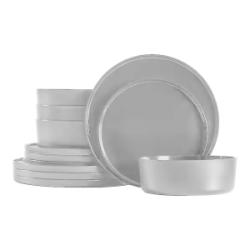 Home Decorators Collection Trenblay Melamine Dinnerware Set in Charcoal Black, Service for 4 (Model TPL1105MDSBB). This set includes 12 pieces designed for durability and style. Contents are packaged securely in the original box, and the set is unused. Pickup only.