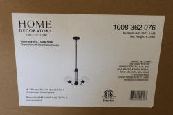 Home Decorators Collection Vista Heights 3-Light Matte Black Globe Pendant with Opal White Glass (Model HD-1871-3-MB). New, in original packaging. Compatible with three max 60W E26 bulbs. Dimensions are 18.13 in x 18.13 in x 13.75 in (assembled). Pickup only.