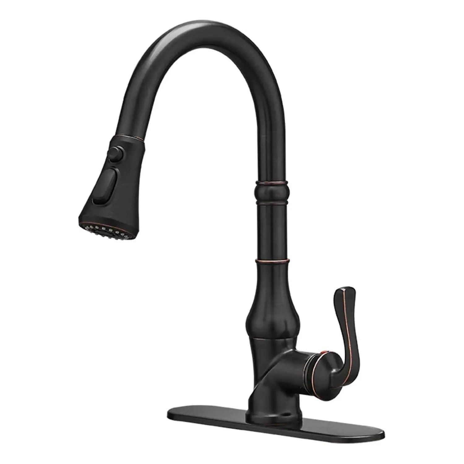 BWE Single-Handle Deck-Mount Pull-Down Kitchen Faucet with Sprayer in Oil Rubbed Bronze (Model A-94552-ORB). Features a sleek oil-rubbed bronze finish, pull-down sprayer, and single-handle design for convenience. Includes original packaging and installation instructions. Pickup only.
