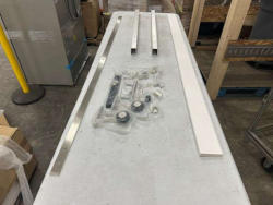 Jeld-Wen 72 Inch DesignGlide Satin Nickel Soft-Close Barn Door Sliding Door Hardware Kit (Model JW2245-000010). Includes hardware for barn door installation in a satin nickel finish, featuring a soft-close mechanism. Pickup only.