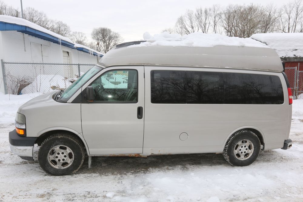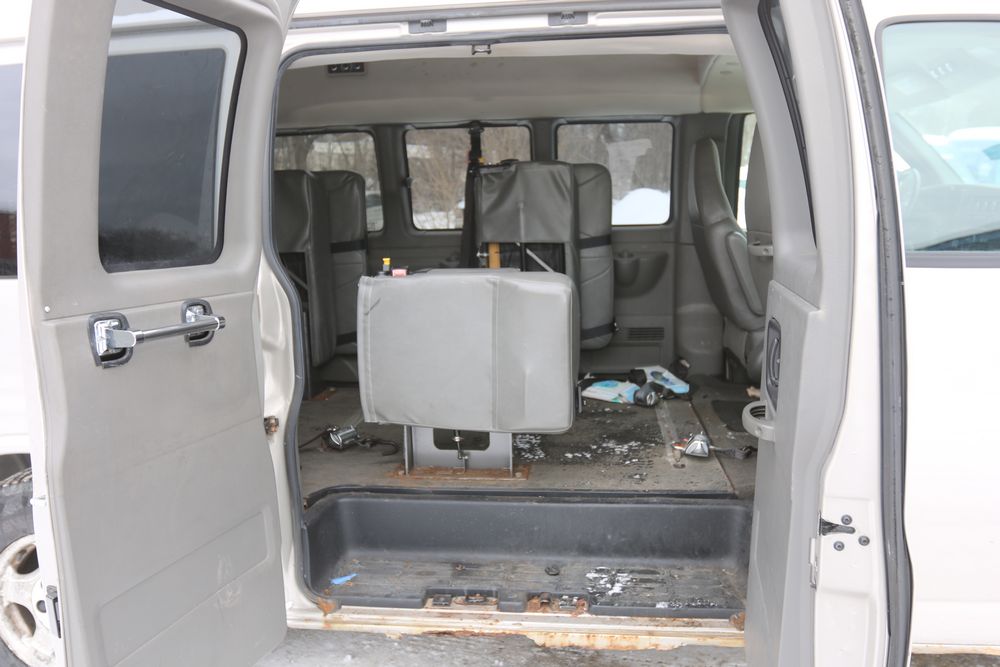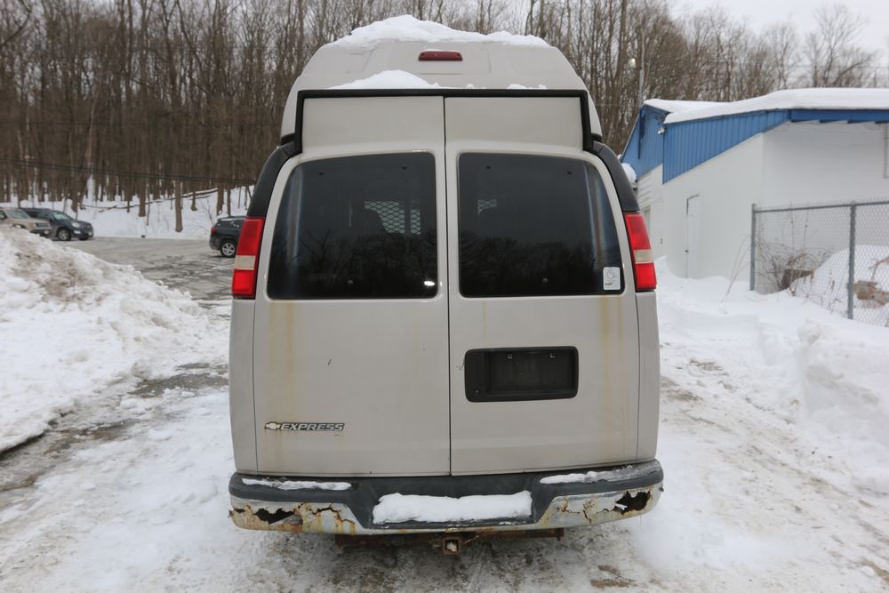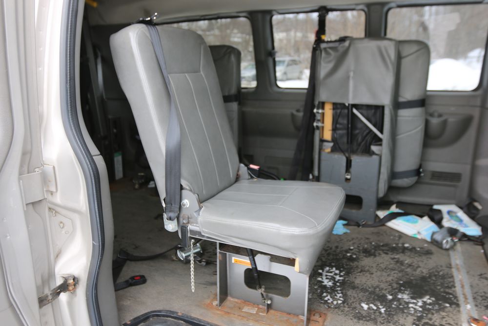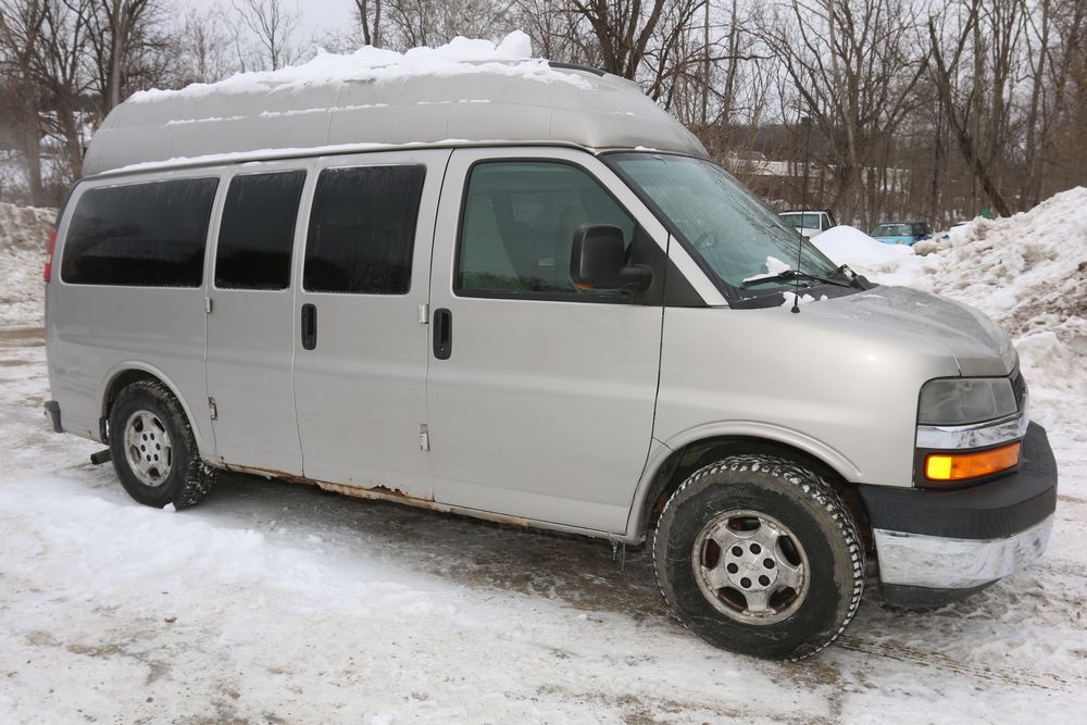 2008 Chevrolet Express LS 1500 AWD with a 5.3L V8 OHV 16V engine, VIN - 1GNFH154081170019, Odometer Reading: 100,929. Seller Reports: Body has some rust. Cloth and leather interior, power windows/locks/mirrors, steering wheel controls, AM/FM radio, CD player, heat & A/C, Millennium Wheel Chair Lift is fully functional, has 14,806 hours, and is Model: NL919IBTB-2. Runs and drives. Keys, Title, and Bill Of Sale available.