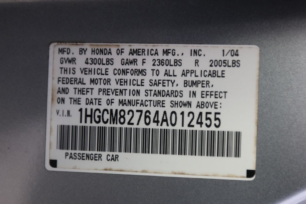 2004 Honda Accord EX V-6 Coupe AT FWD with a 3.0L V6 SOHC 24V engine, VIN - 1HGCM82764A012455, Odometer Reading: 223,098. Seller Reports: Has new power steering rack, new timing belt, new front and rear brake pads. Leather interior, power windows/locks/mirrors, touchscreen display with navigation, XM/AM/FM radio, and heat. Runs and drives. Keys, Title, and Bill Of Sale available.