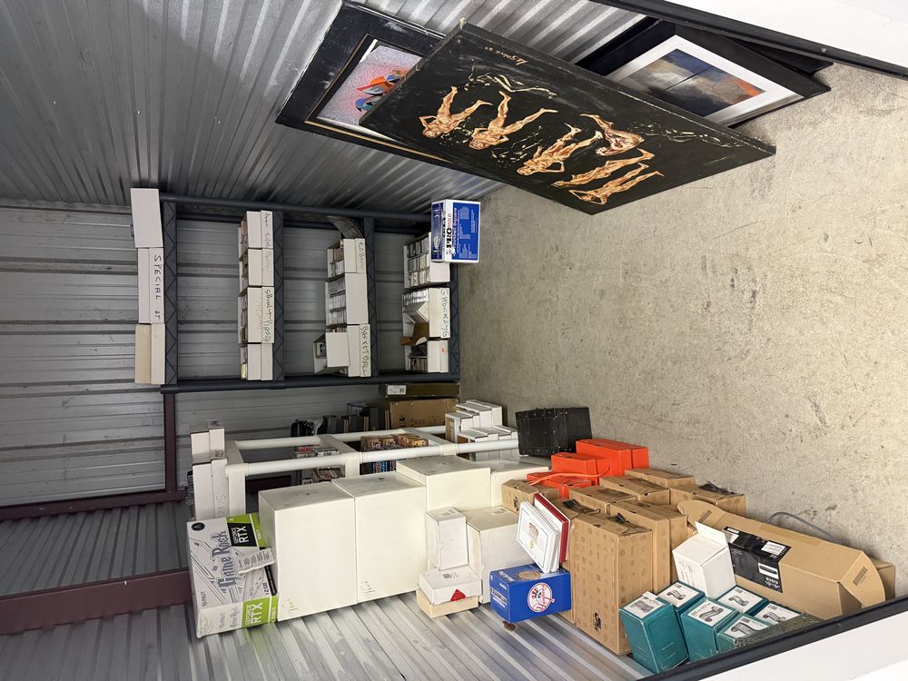 Contents of a 5' x 10' storage unit being sold by the storage facility owner. Items include a wide assortment of vintage & modern trading cards, including but not limited to: Hockey, MLB, NBA, Pokemon, Marvel, Wrestling, and other miscellaneous cards. Both opened and sealed boxes are included, with a small number of cards graded by PSA. Additional items include a computer graphics card, Nike and Converse sneakers, Disney figurines, Vivi porcelain figures, and various fine art pieces. The functionality of electric/electronic items are unknown/not tested. The authenticity of items have not been verified or guaranteed on any/all items. Items are located in Wappingers Falls, NY.
