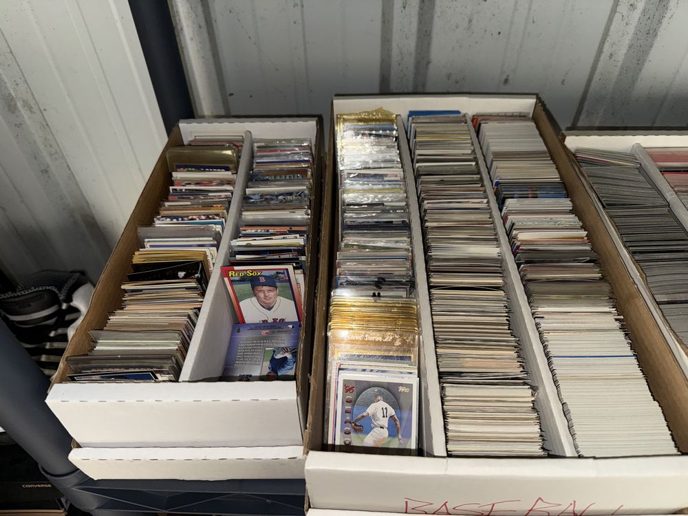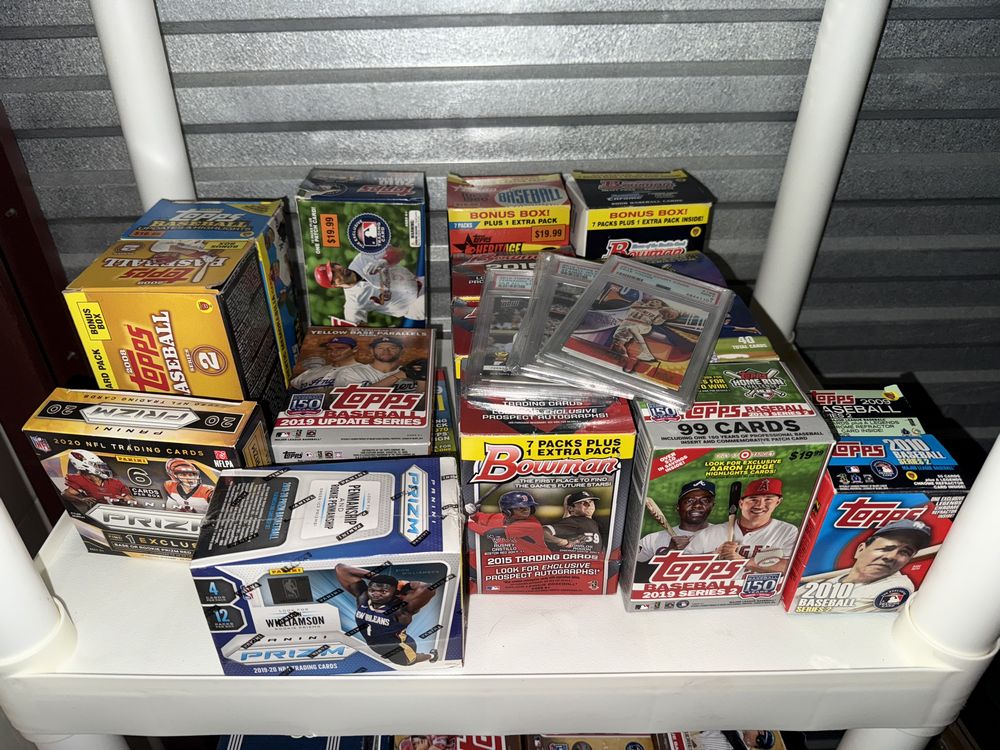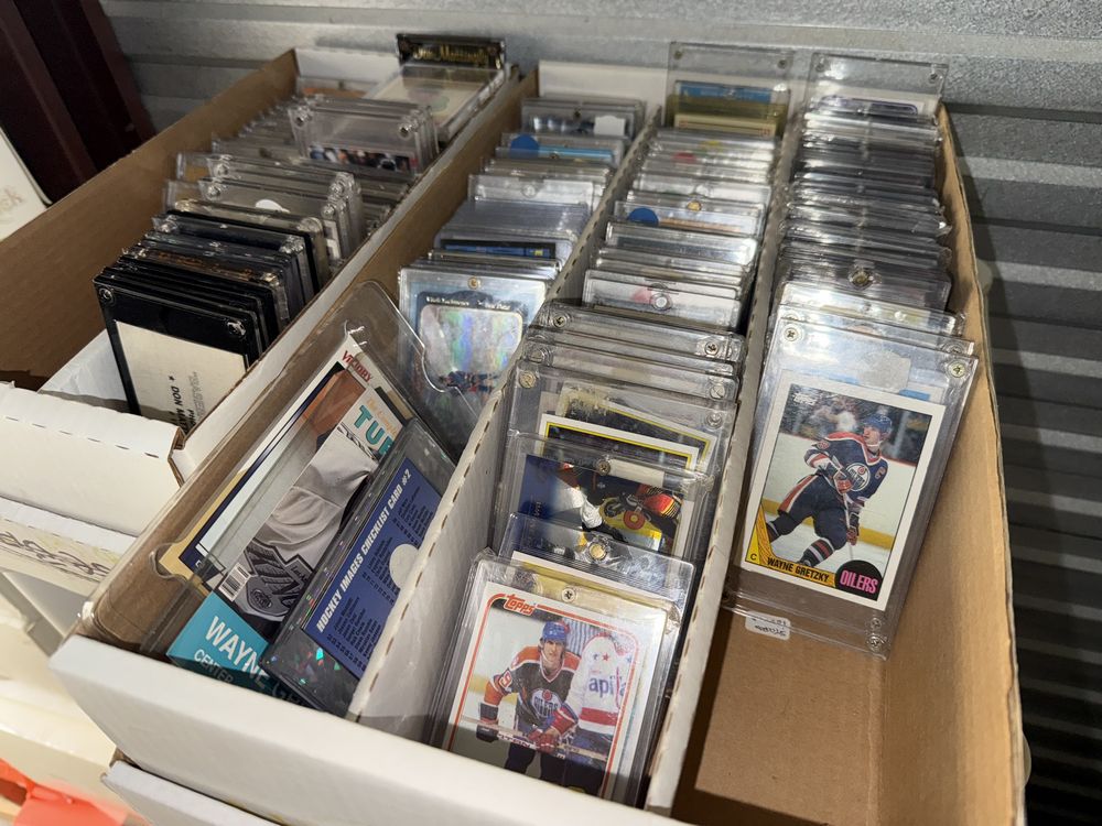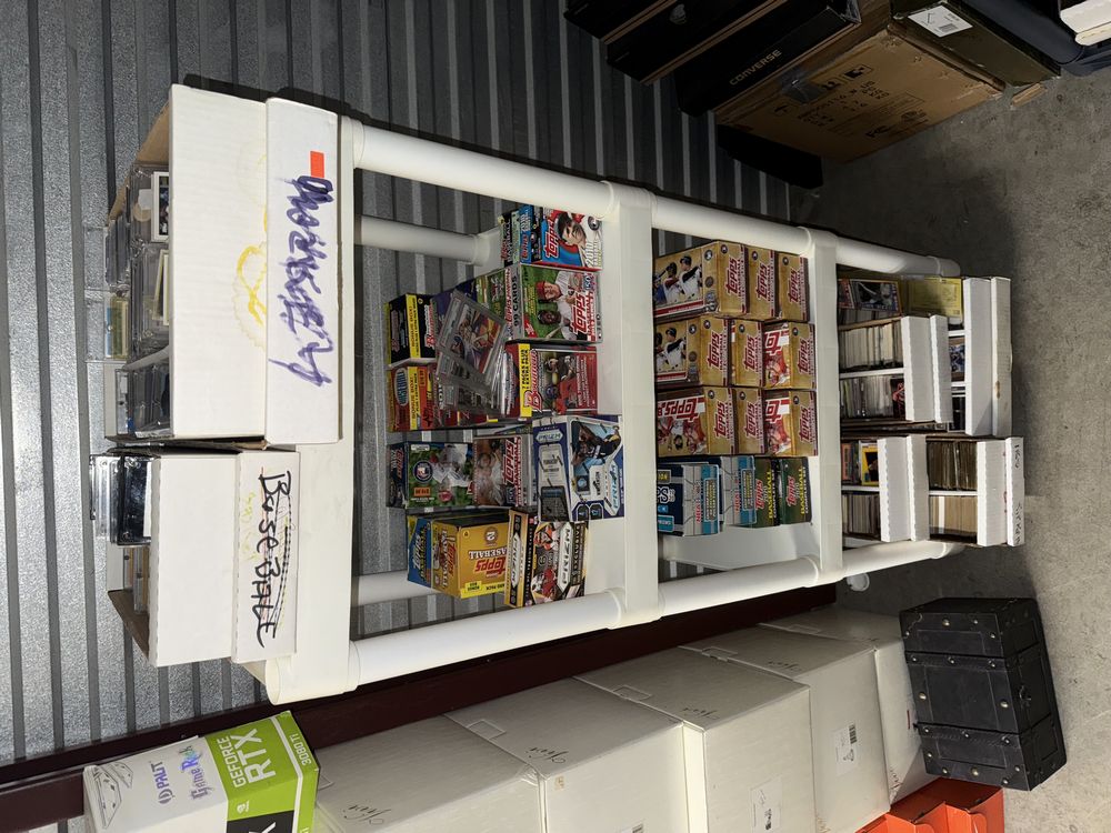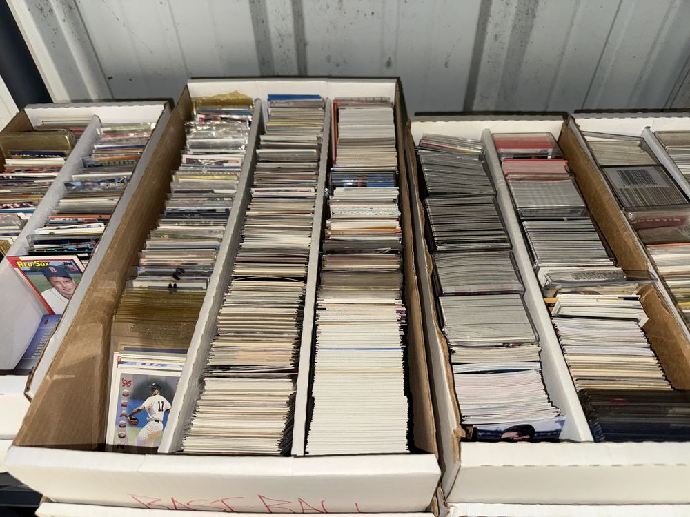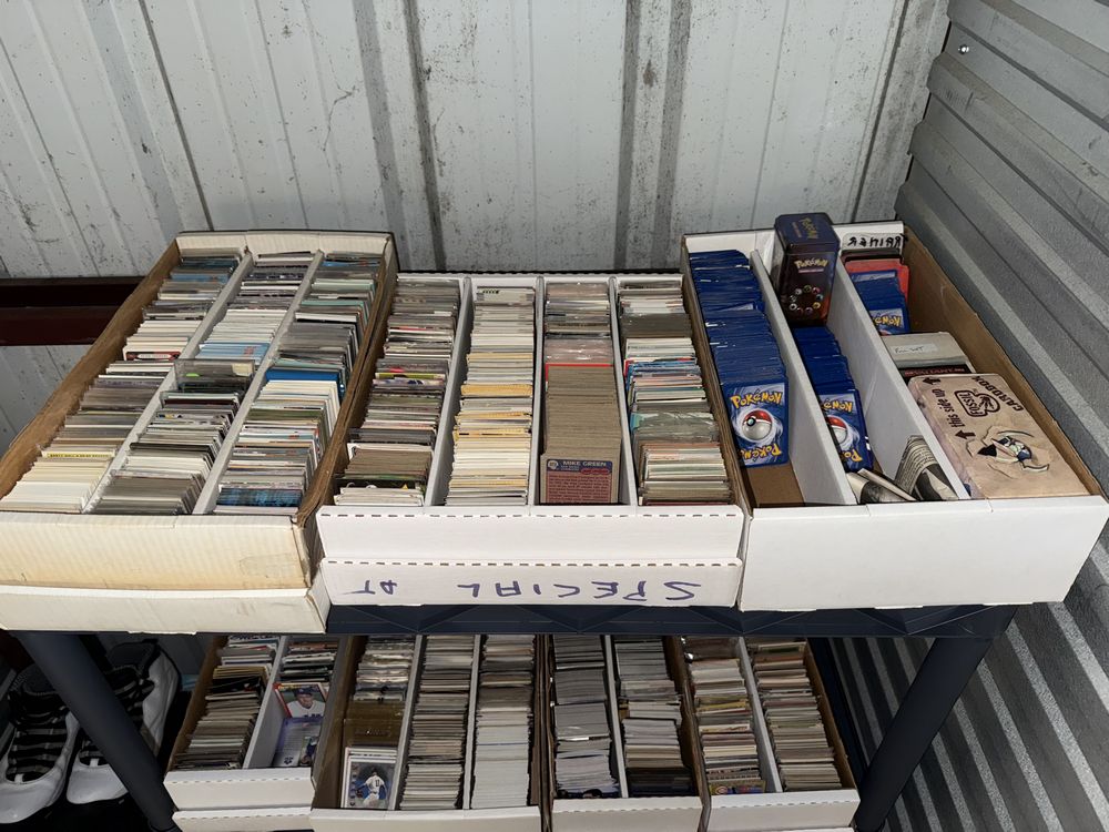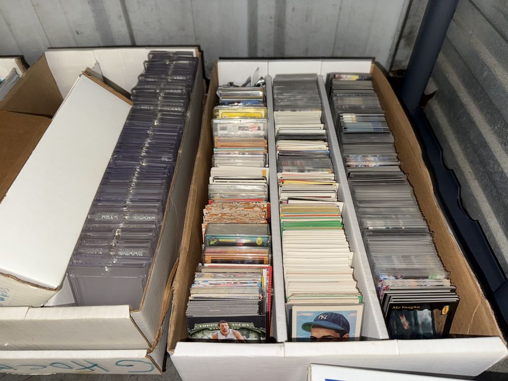 Contents of a 5' x 10' storage unit being sold by the storage facility owner. Items include a wide assortment of vintage & modern trading cards, including but not limited to: Hockey, MLB, NBA, Pokemon, Marvel, Wrestling, and other miscellaneous cards. Both opened and sealed boxes are included, with a small number of cards graded by PSA. Additional items include a computer graphics card, Nike and Converse sneakers, Disney figurines, Vivi porcelain figures, and various fine art pieces. The functionality of electric/electronic items are unknown/not tested. The authenticity of items have not been verified or guaranteed on any/all items. Items are located in Wappingers Falls, NY.