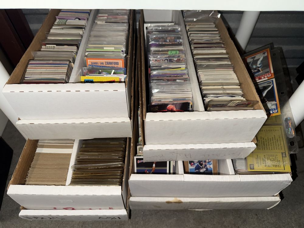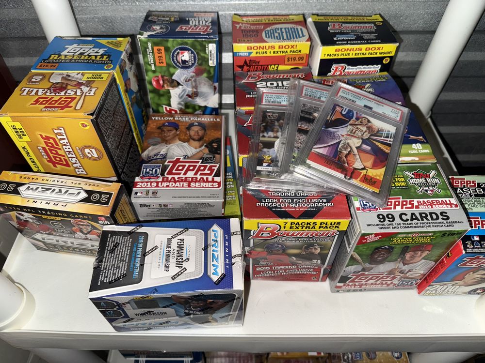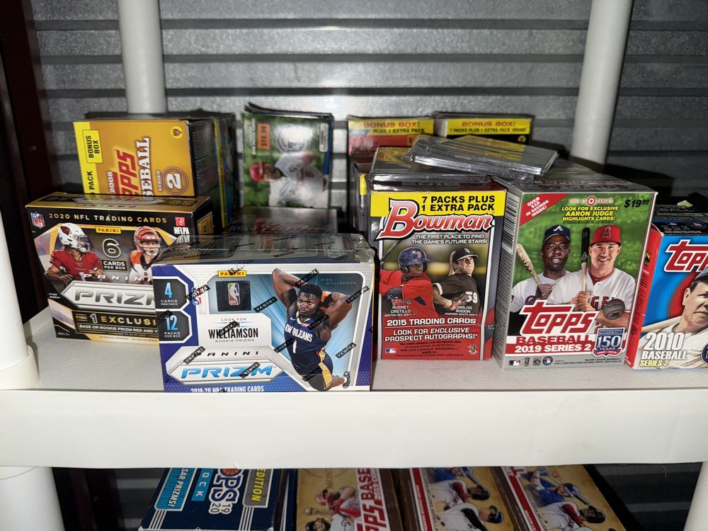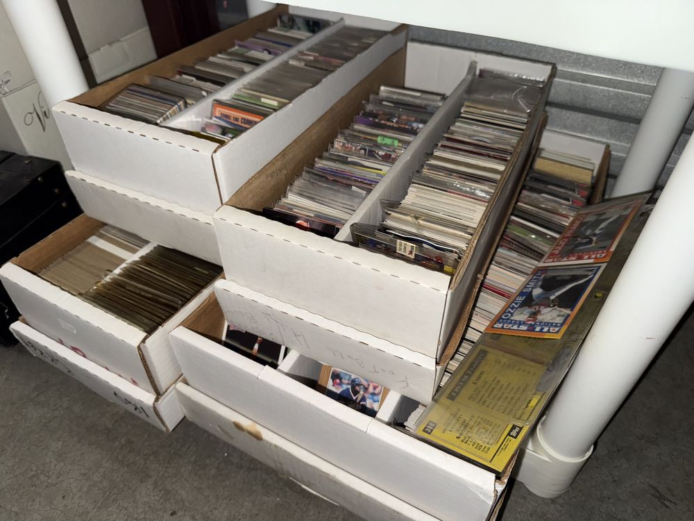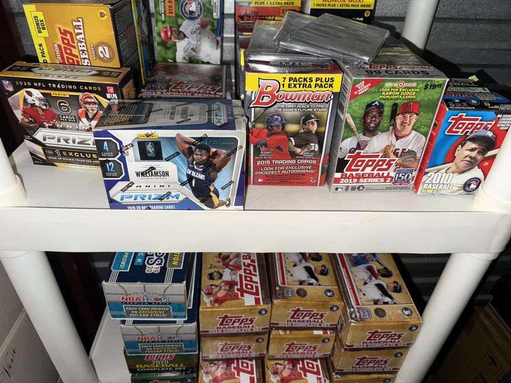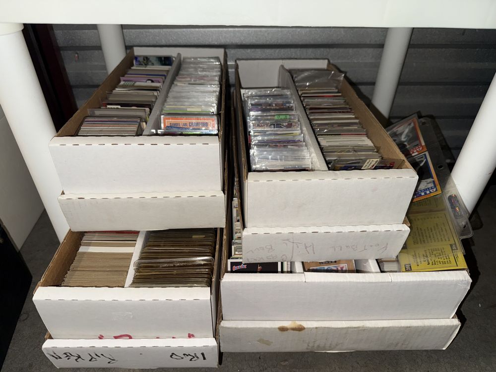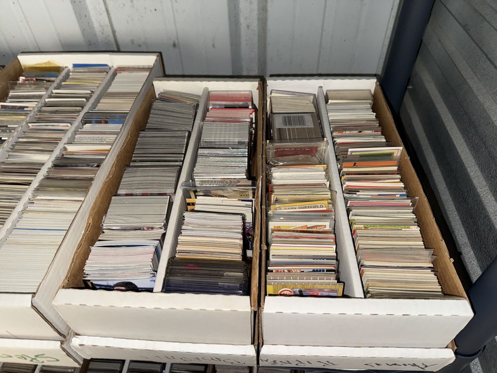 Contents of a 5' x 10' storage unit being sold by the storage facility owner. Items include a wide assortment of vintage & modern trading cards, including but not limited to: Hockey, MLB, NBA, Pokemon, Marvel, Wrestling, and other miscellaneous cards. Both opened and sealed boxes are included, with a small number of cards graded by PSA. Additional items include a computer graphics card, Nike and Converse sneakers, Disney figurines, Vivi porcelain figures, and various fine art pieces. The functionality of electric/electronic items are unknown/not tested. The authenticity of items have not been verified or guaranteed on any/all items. Items are located in Wappingers Falls, NY.