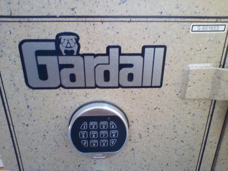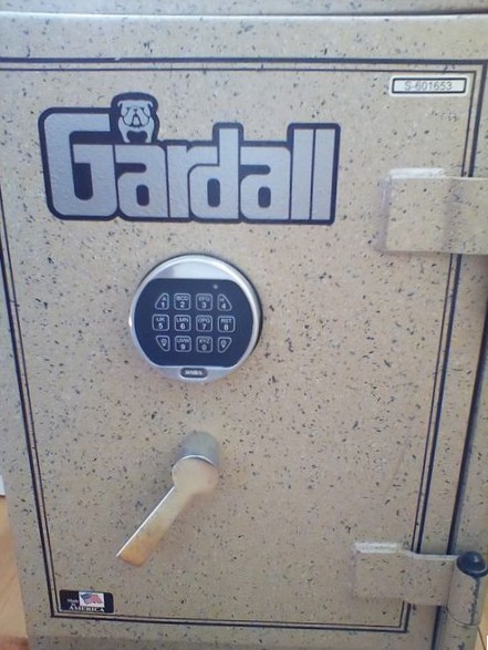 Gardall Safe. S-601653 Gardall combination safe with two-hour rating, no. D03823019, 17.5"Wx26"Dx25"H. Located on the second floor. Bring help to safely remove.