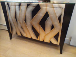 Contemporary Black Lacquered Sideboard Buffet. Contemporary buffet cabinet with fixed shelves and custom 1/4 thick glass top, 54"Wx16"Dx37"H. See photos for details. Items seen on top of cabinet not incl.