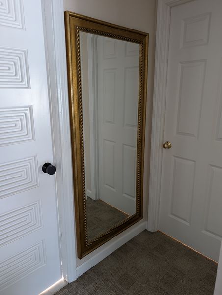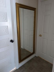 Extra Large Mirror. Beveled floor mirror in gilt frame, 29.5"Wx1.75"Dx65"H in a 3.5" W frame. See photos. Loc on 2nd floor.