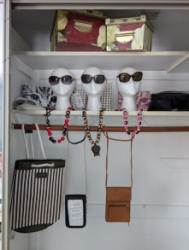 Women's Boutique Items, featuring Henri Bendel. Costume jewelry; designer sunglasses; Henri Bendel of New York duffle bag; Conair hot rollers; travel make-up container; decorative storage boxes; Parlux 385 hair dryer; assort wallets & bags, incl Michael Kors and others. See photos for details. Loc on 2nd floor in closet. Loc on 2nd floor.