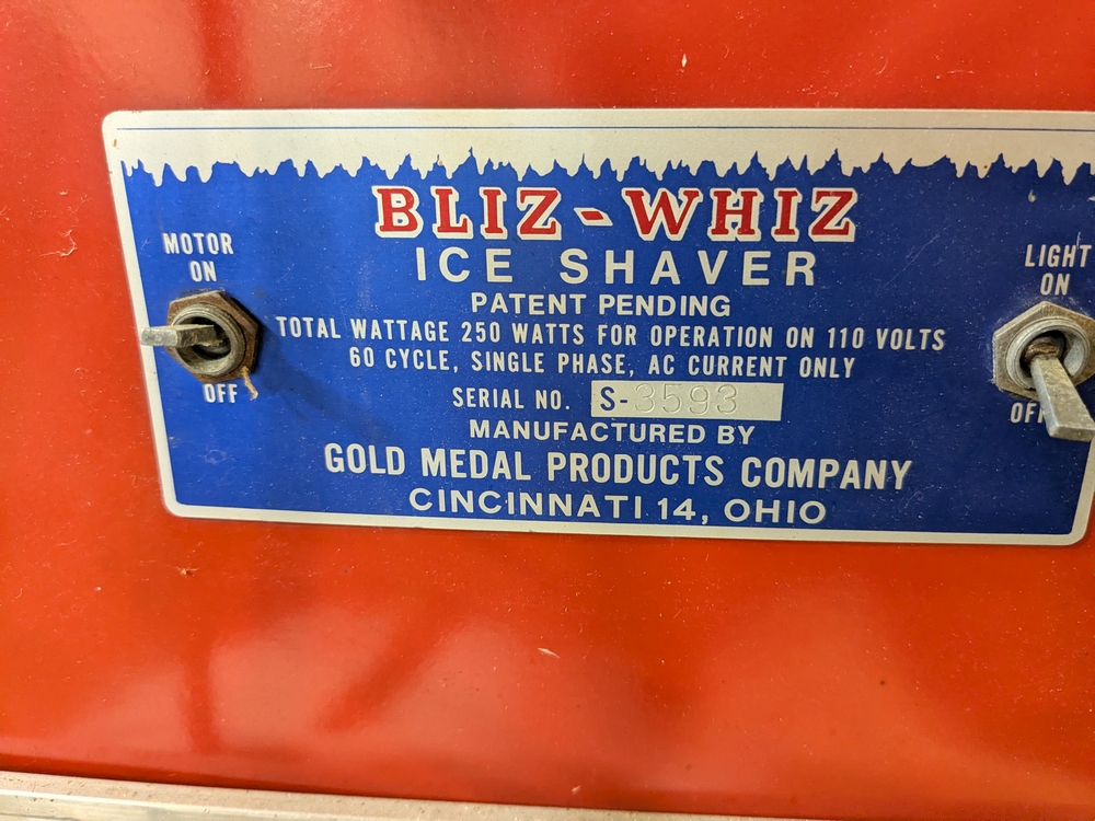 Bliz-Whiz Ice Shaver; Sno-Kone maker, operates as intended.