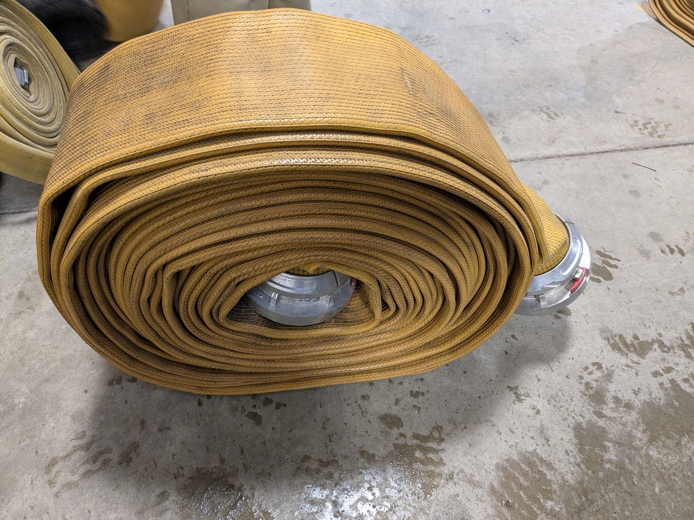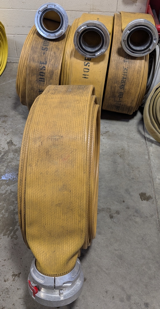 Items include 2003 Bauer H13-E3 high pressure breathing air compressor; 2003 Bauer three-position containment fill station; Roto-Jet fire hose washer w/ hose reel; Stihl 036 Pro chain saw; assorted fire hose fittings; 5" fire hose & more. Items are located in Lowville, NY.