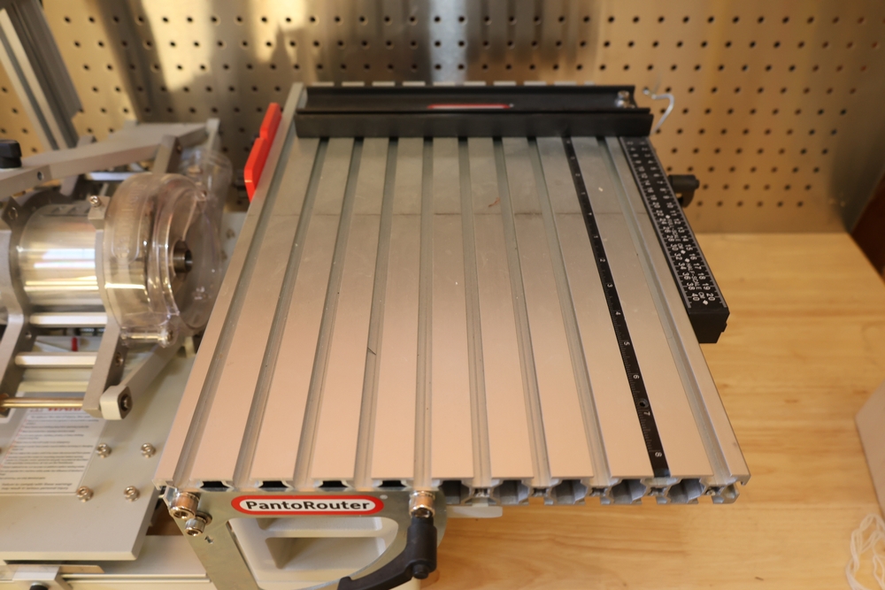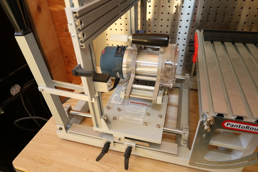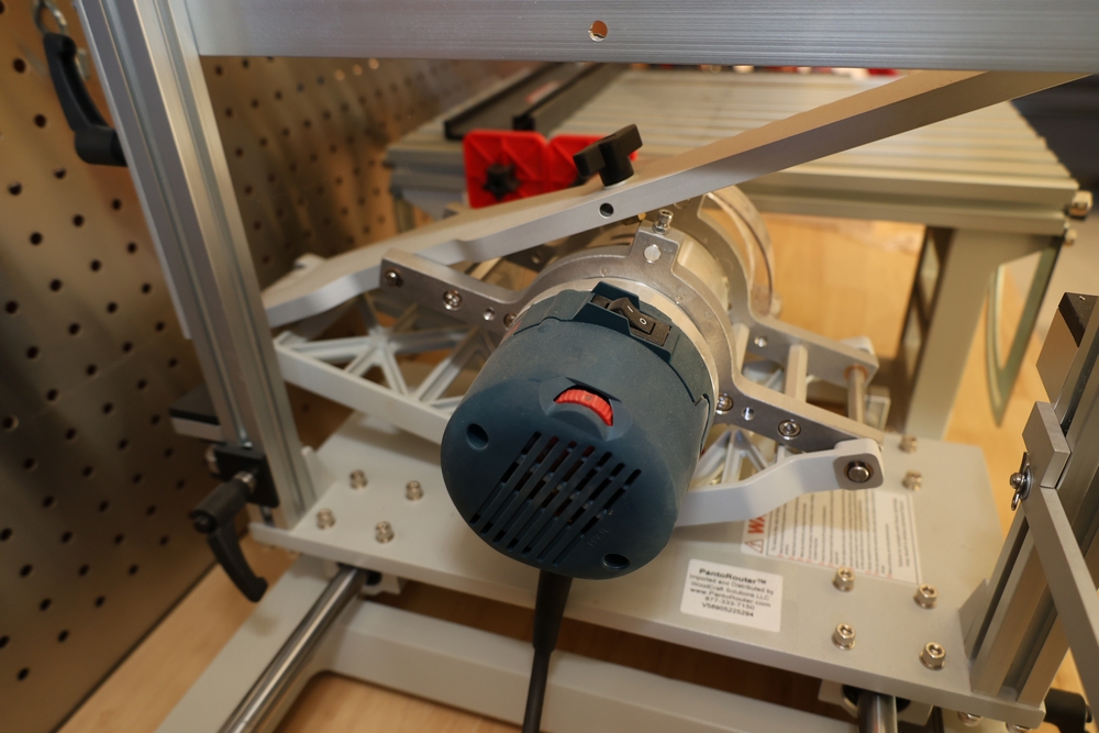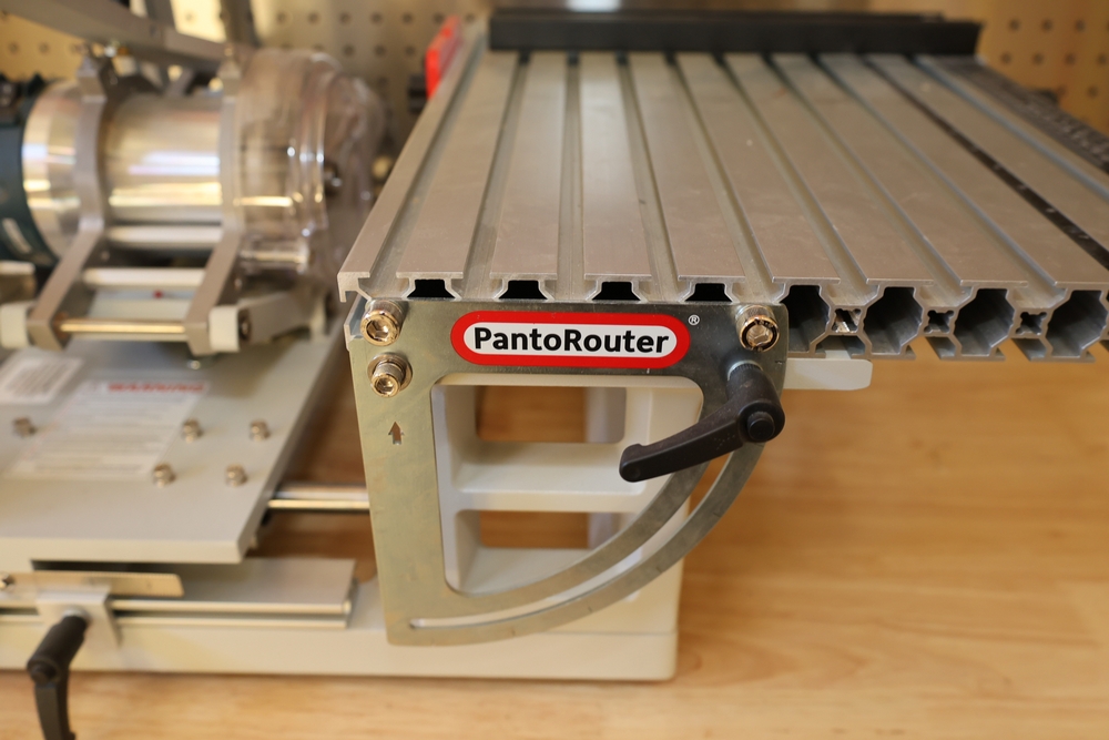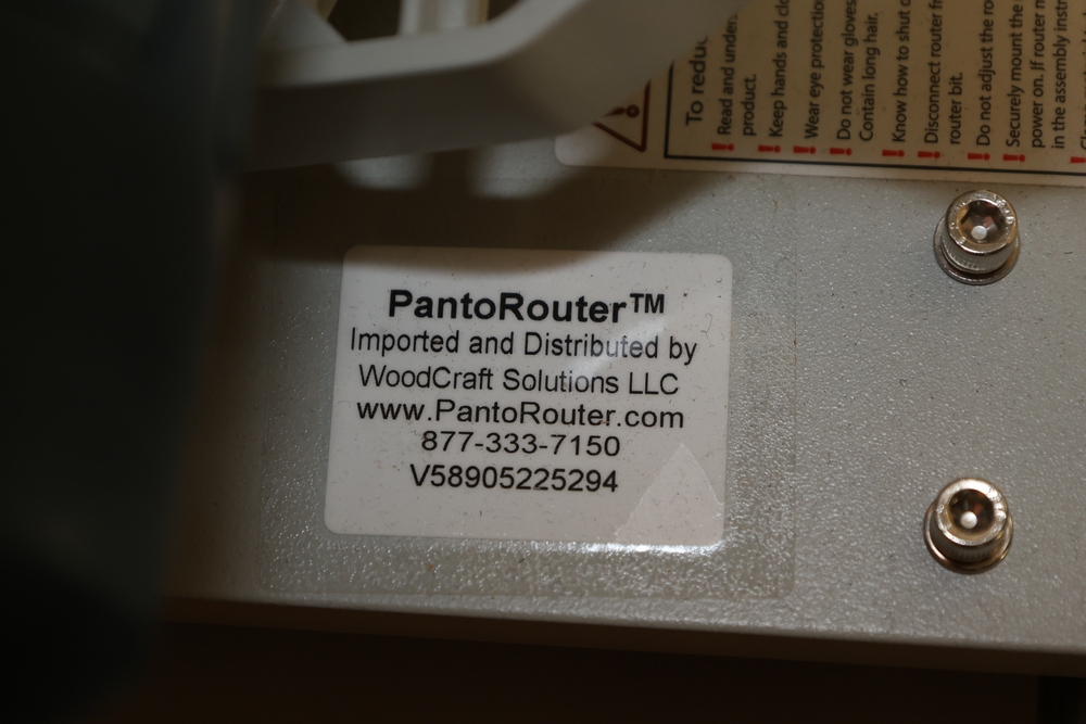 PantoRouter woodworking machine by WoodCraft Solutions LLC, equipped with a Bosch 1617EVS router motor, adjustable pantograph mechanism, aluminum work table, and clear safety guard, mounted on a benchtop base with the PantoRouter table assembly and controls. No equipment is onsite to assist loading. Bring the proper tools, equipment, and help needed to load your items. Seller reports: nearly all the powertool (especially Festools) are in fantastic condition, low low use and have been kept in climate controlled garage.