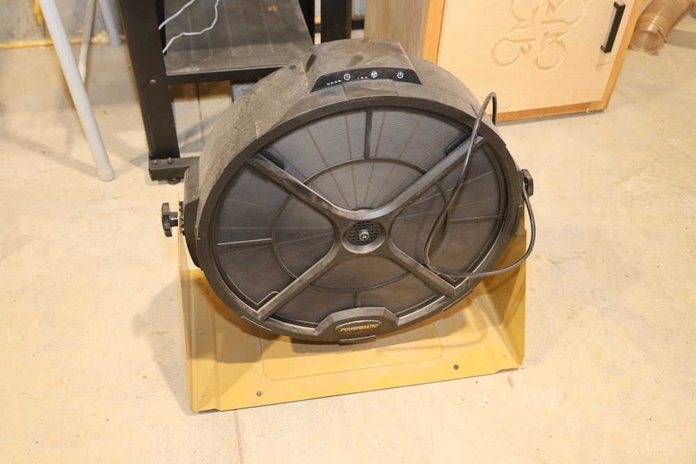 Powermatic PM1250 electrostatic air filtration system, model PM1250, stock number 1791331, 120V, 3A, 60Hz. Features multi-speed operation with L, M, and H settings and programmable timer settings for 1H, 2H, 4H, and 8H intervals. No equipment is onsite to assist loading. Bring the proper tools, equipment, and help needed to load your items. Seller reports: nearly all the powertool (especially Festools) are in fantastic condition, low low use and have been kept in climate controlled garage.