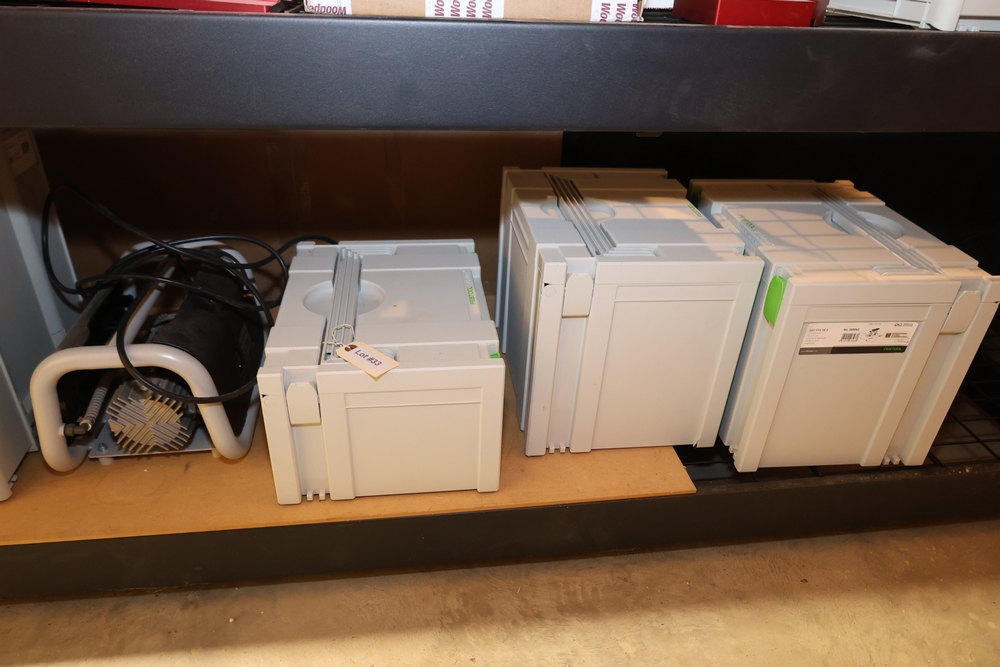 Festool vacuum system including Festool VAC SYS SE 2 vacuum unit, No. 580062; Festool VAC-PMP vacuum pump; Festool VAC SYS SE 1 vacuum unit, No. 201065; and Festool VAC SYS VT Sort accessory Systainer, No. 495294, with associated hoses and components housed in Festool Systainers. No equipment is onsite to assist loading. Bring the proper tools, equipment, and help needed to load your items. Seller reports: nearly all the powertool (especially Festools) are in fantastic condition, low low use and have been kept in climate controlled garage.