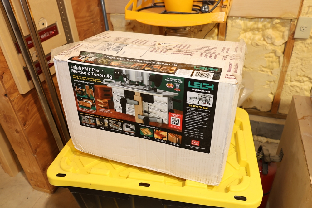 Leigh FMT Pro Mortise and Tenon Jig, model FMT Pro, in original box with foam inserts, includes user guide, mounting hardware, clamps, guides, and associated components as packaged. No equipment is onsite to assist loading. Bring the proper tools, equipment, and help needed to load your items.