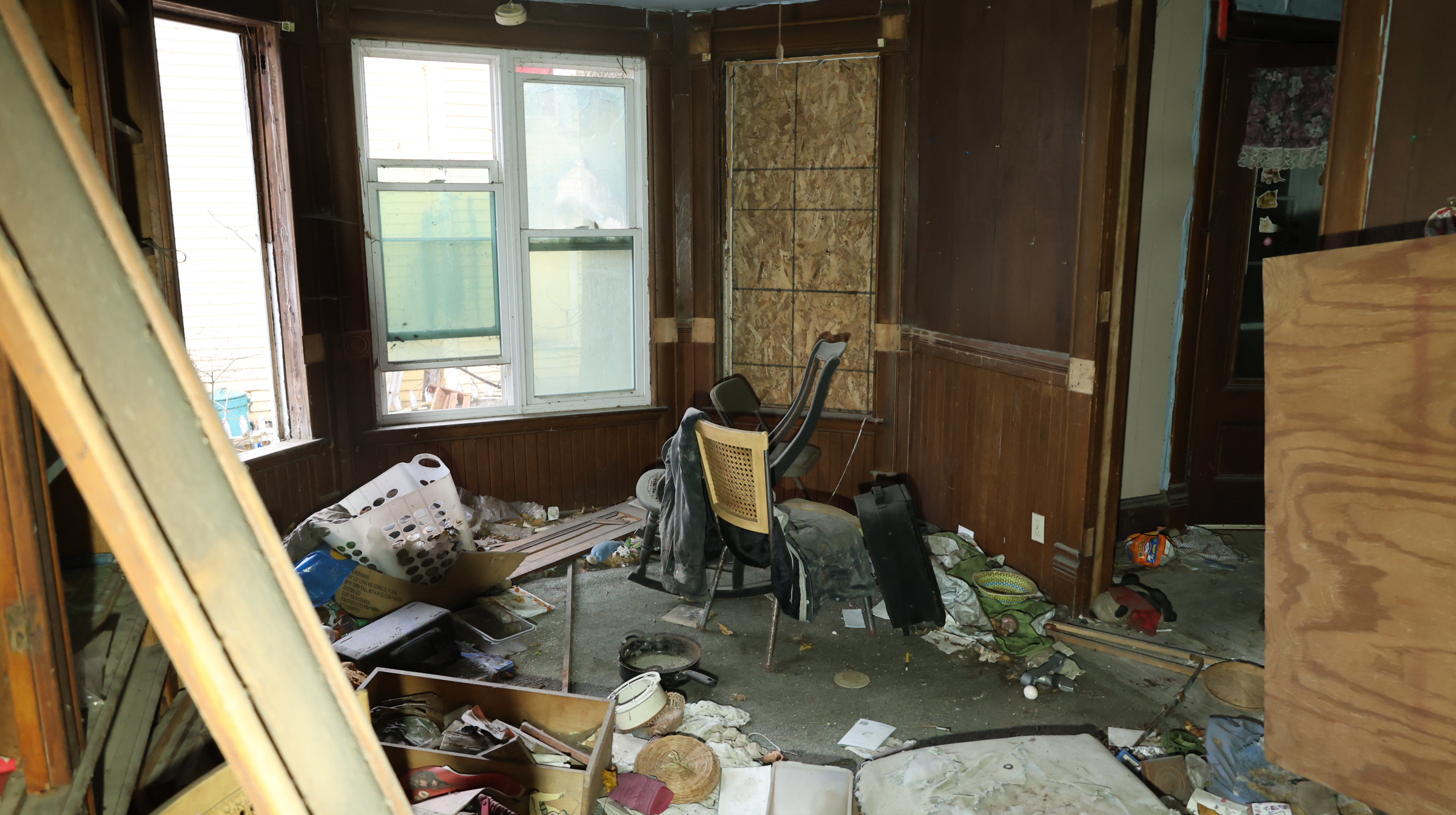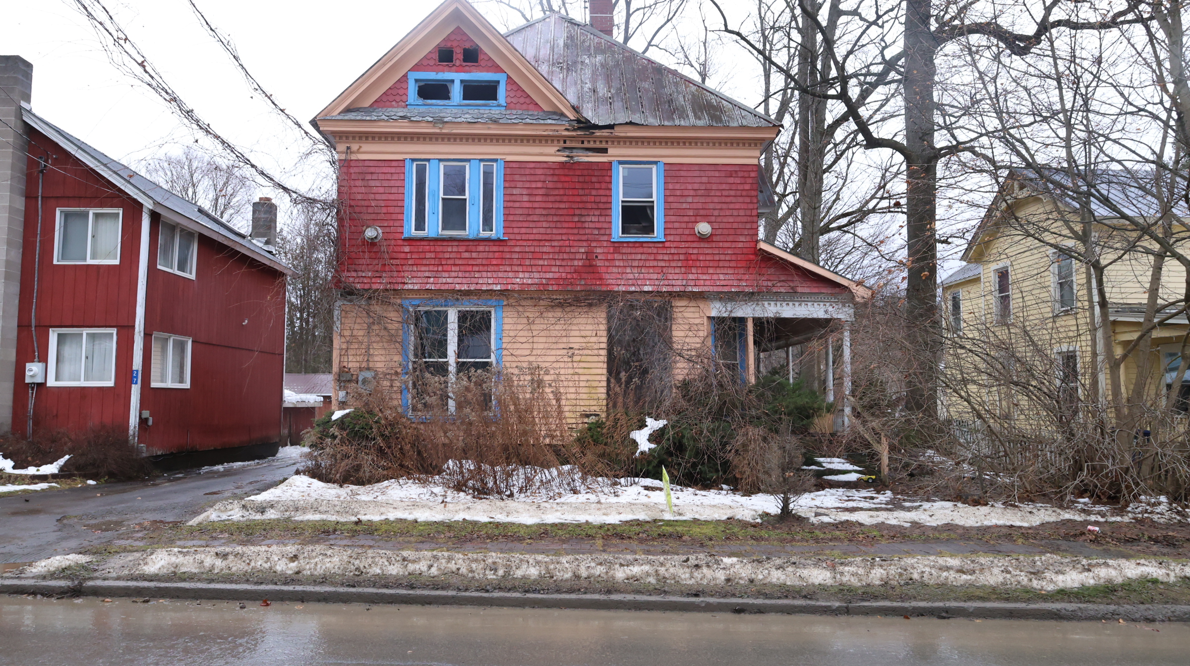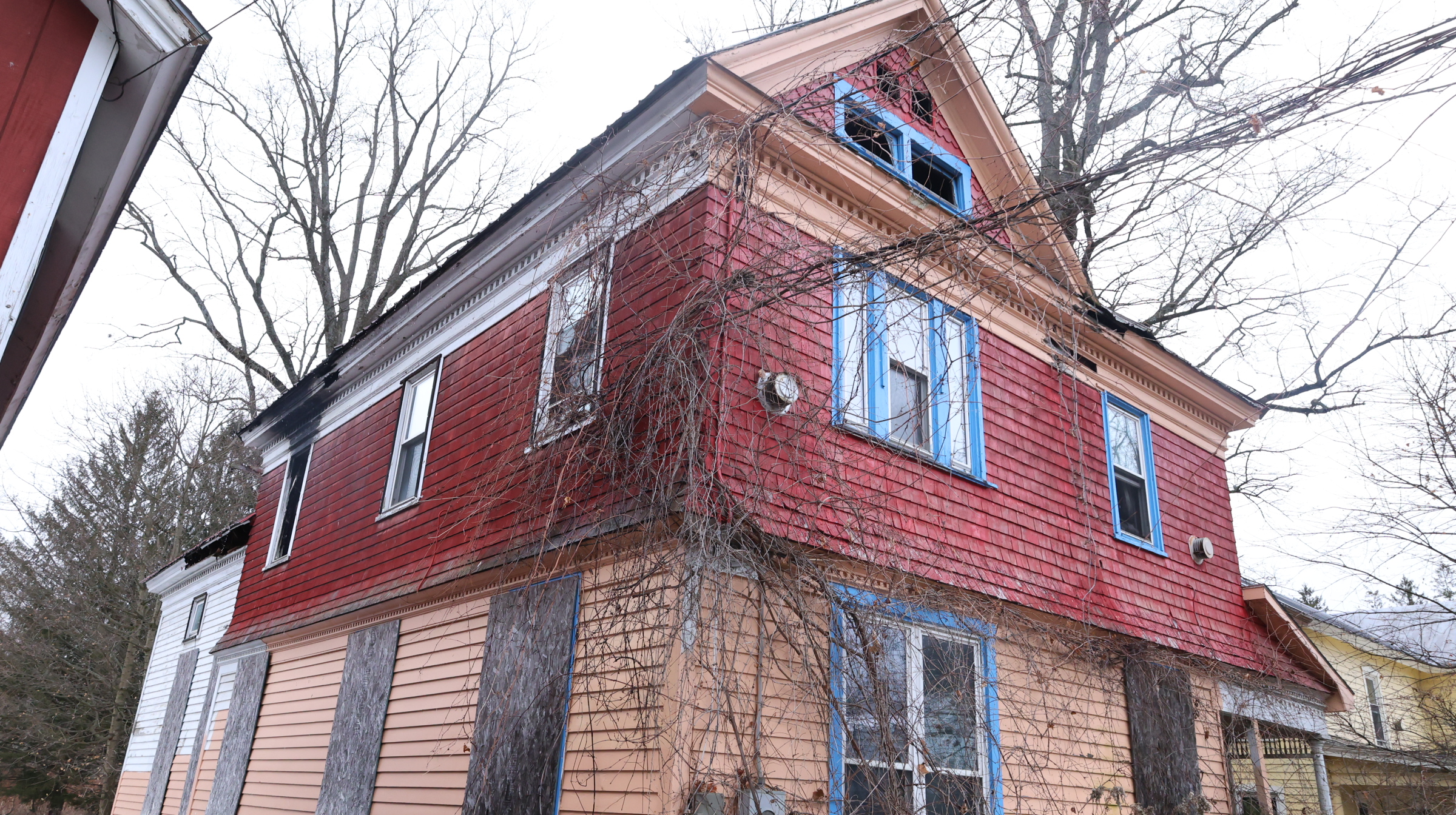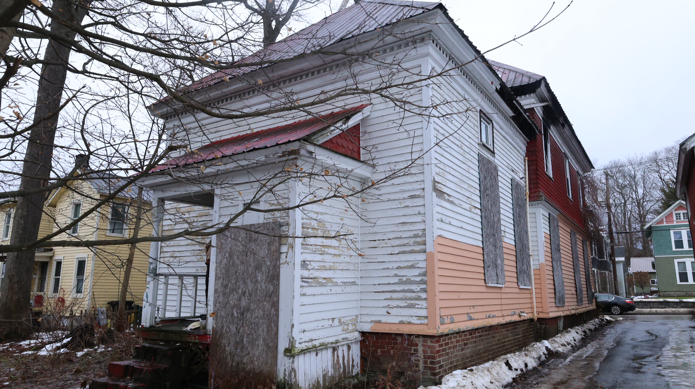 | Two family residence, 2 story, Old style, built 1890+/-, 2156+/- sq. ft., 2BR/2.5BA, porches. Fire damage. Waterfront on Mill Creek. |