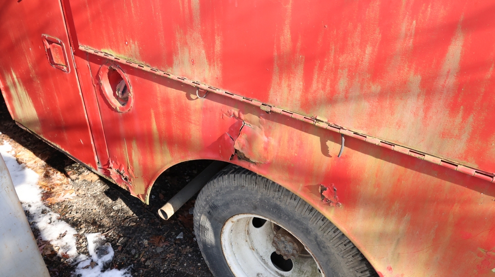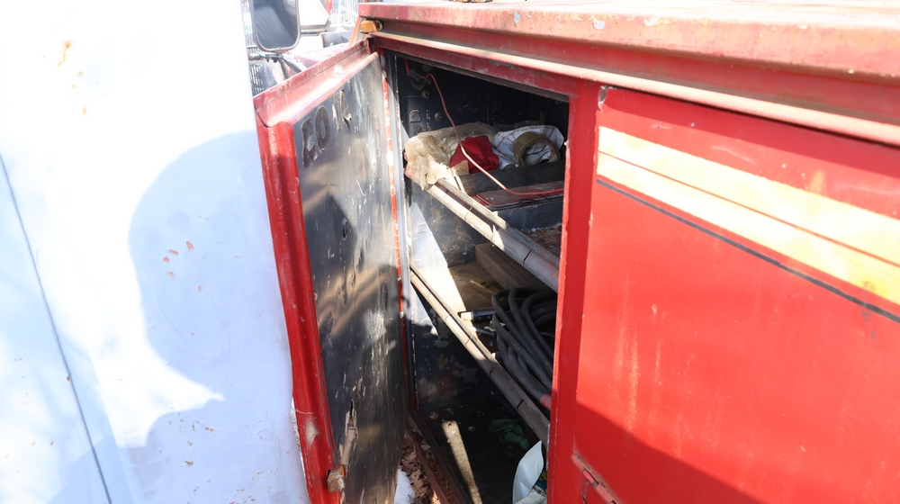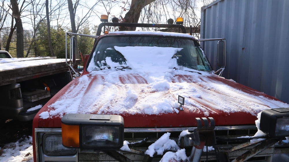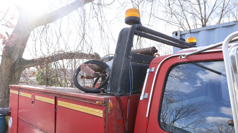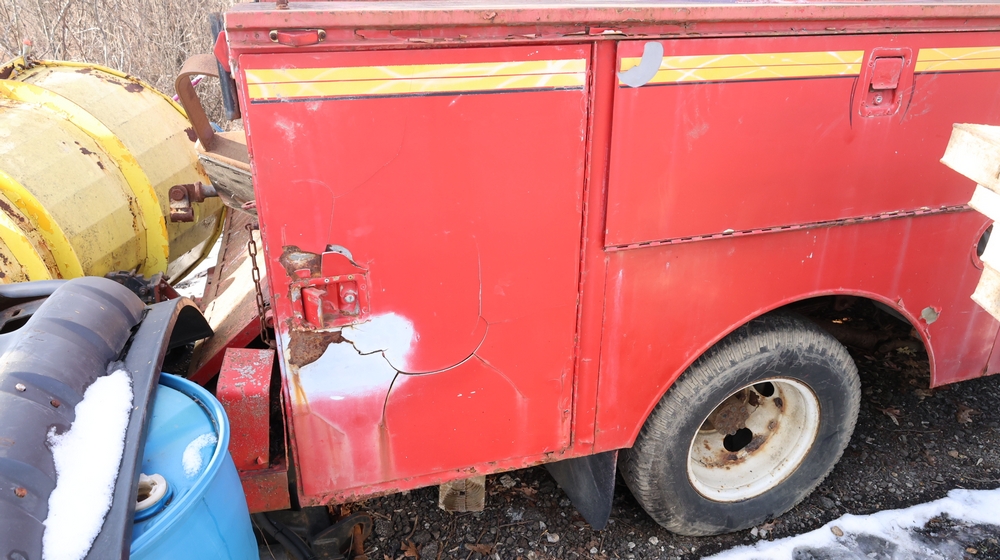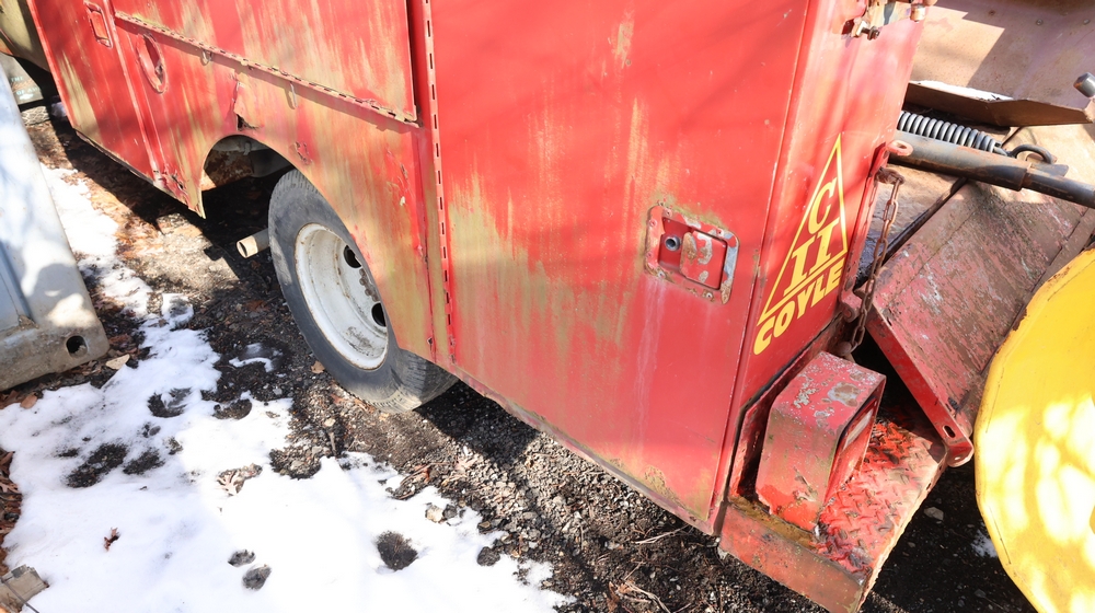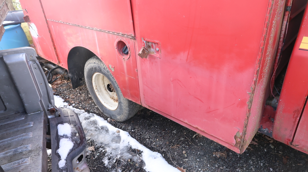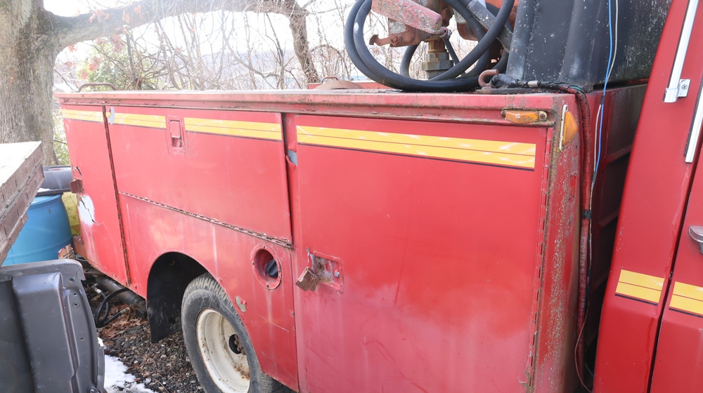 Items include Landhero mini excavator; 1974 General Motors tow truck; 1988 GMC V3500 Regular Cab 4WD; Fisher Pro-Caster industrial sander unit; Landhonor LHR-LB9510 leaf blower; Milwaukee hand truck; assorted stacked plywood sheets; Pittsburgh mechanics tool set; assorted traffic control safety equipment; 52cc gas powered multi tool power head with hedge trimmer attachment; Quick Cable electric tool; pink rigid foam insulation boards, welded wire mesh panels, Husky contractor clean up bags box, Grip Rite construction screws; PVC pipes & fittings; assorted dimensional lumbar & more. Items are located in Peekskill, NY.
