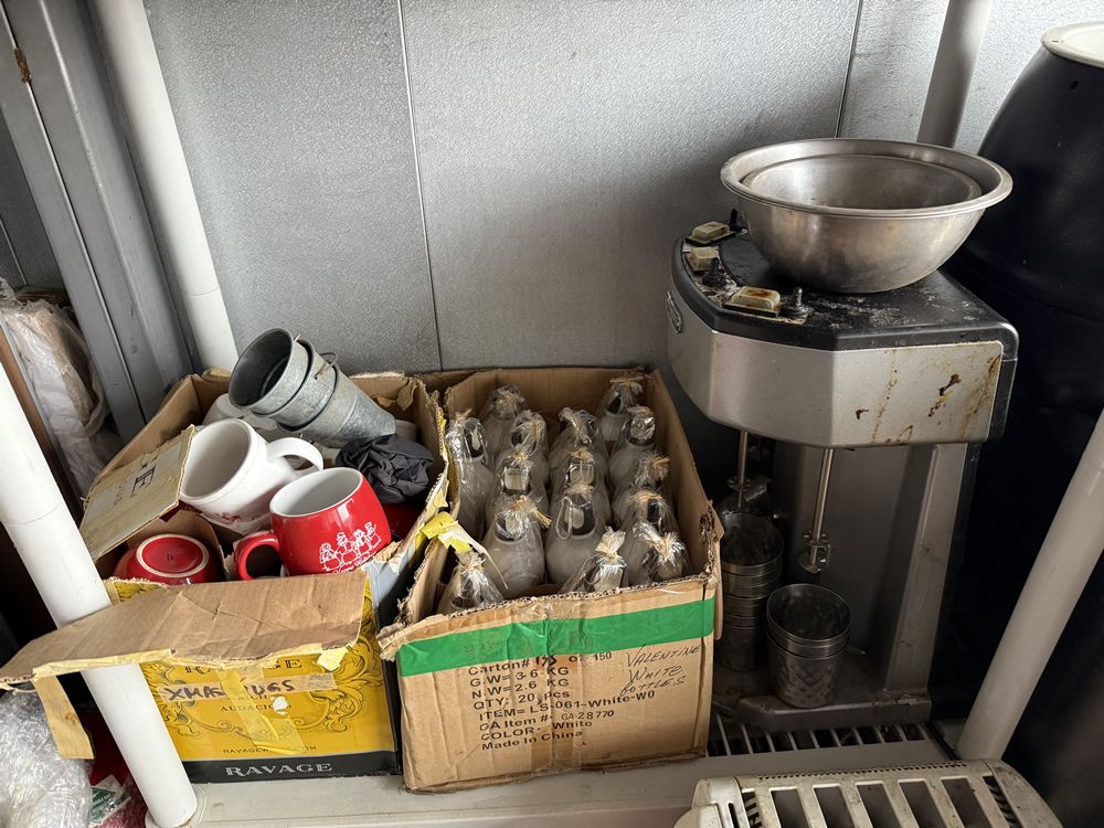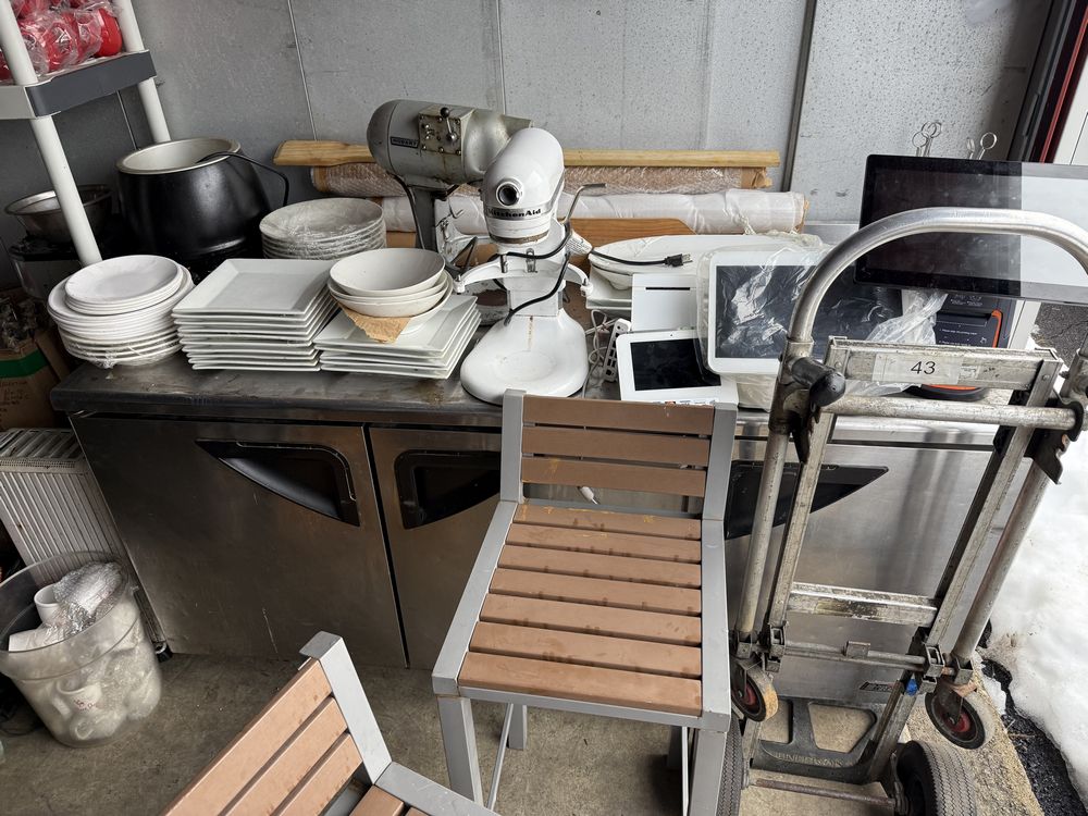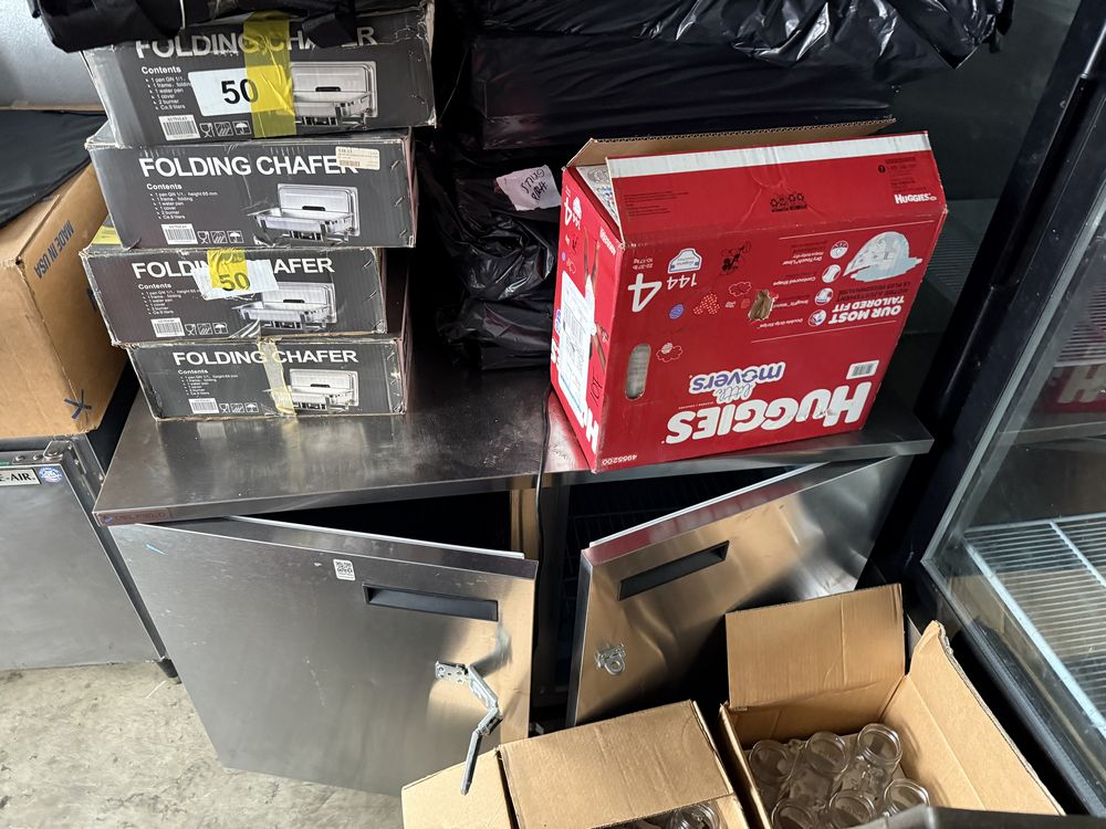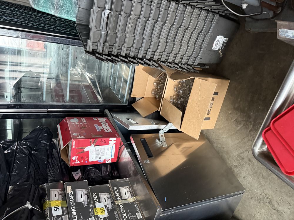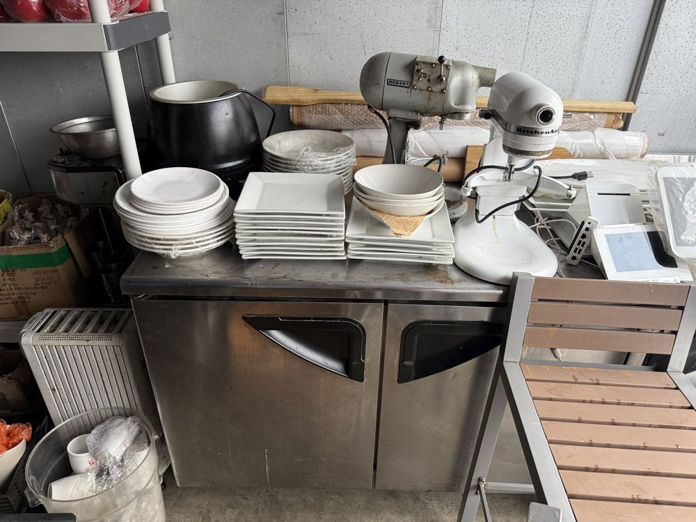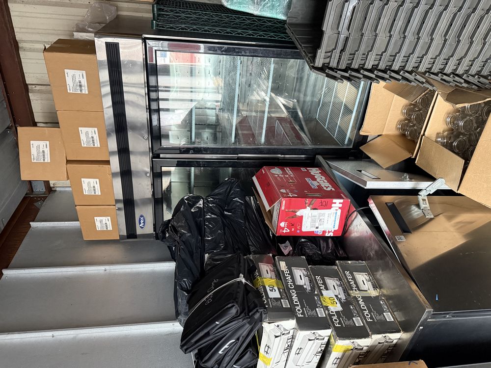 Contents of a 10' x 20' storage unit being sold by the storage unit owner. This storage unit contains Contents of closed down restaurant/cafe: includes Bunn coffee maker, stainless steel sinks, delivery bags, chairs, lights, shelves, plastic crates, cookbooks, Beverage Air UCR20Y fridge, Beverage Air UCR34Y Fridge, Delfield Undercounter fridge, Atosa Glass Door Fridge, Chafing Pans, FMC Fresh n Squeeze Juicer, Meat Saw, Pie Press, Adcraft Fryer, Cecilware Fryer, Mason Jars, Mugs, cream dispensers, plates, bowls, rice warmer, salad spinner, power washer, soup warmer, Hobart mixer, kitchen aid mixer, containers, POS system, ryobi pressure washer, Turbo Air TWR-72SD fridge and more. The functionality of electric/electronic items are unknown/not tested. The authenticity of items have not been verified or guaranteed on any/all items. Items are located in Wappingers Falls, NY.