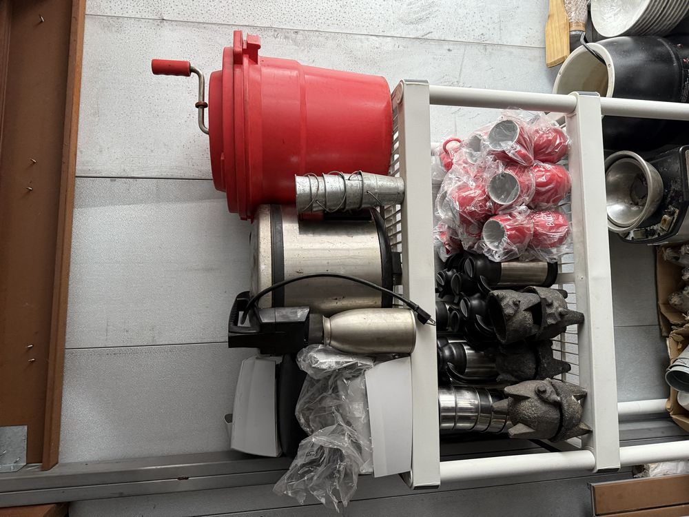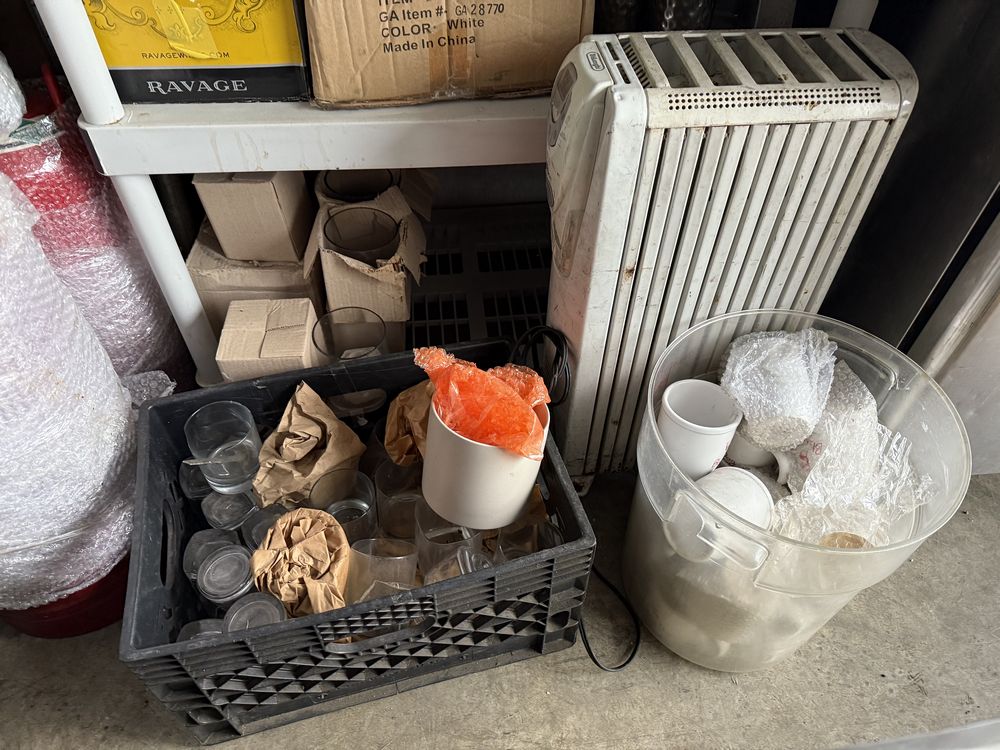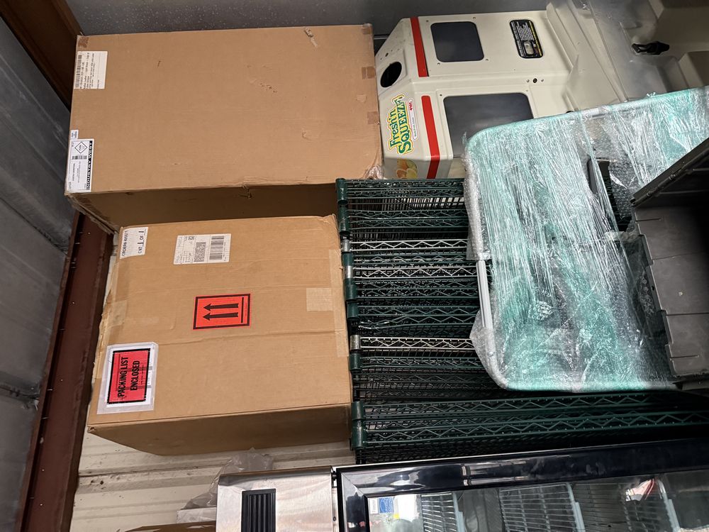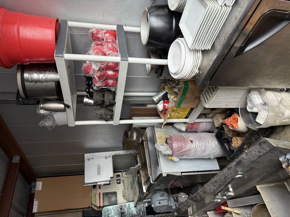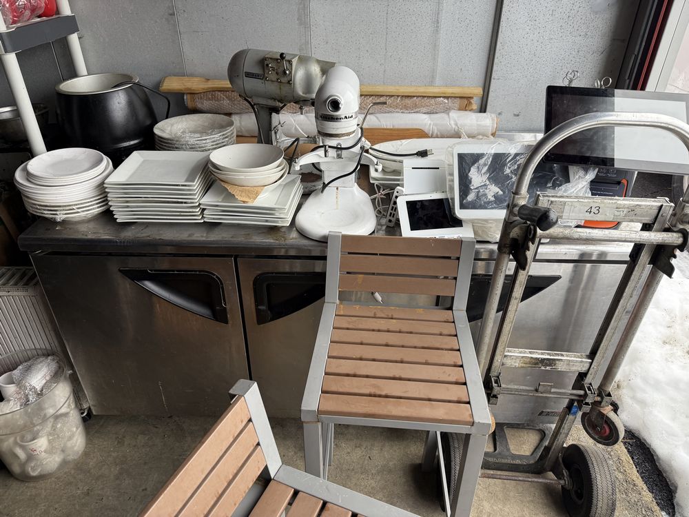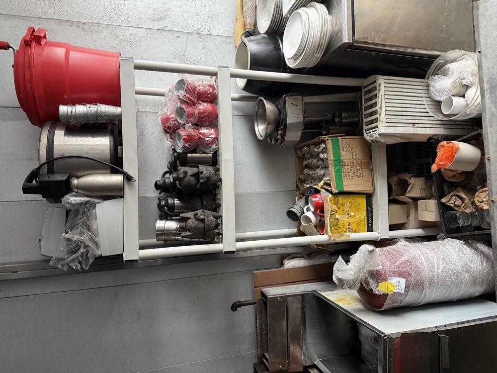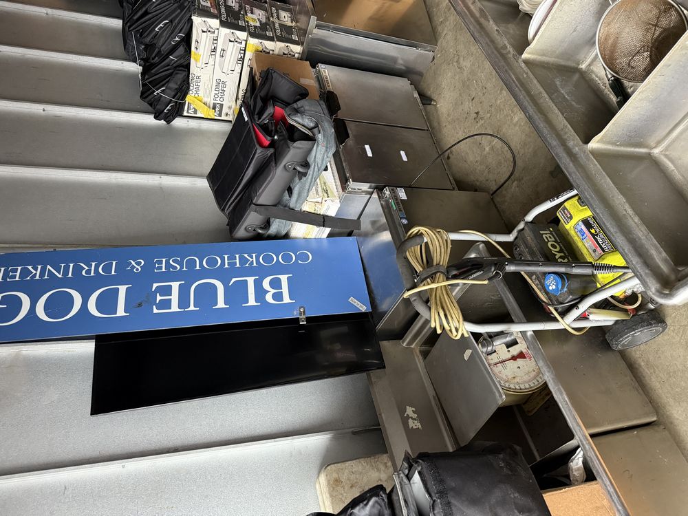 Contents of a 10' x 20' storage unit being sold by the storage unit owner. This storage unit contains Contents of closed down restaurant/cafe: includes Bunn coffee maker, stainless steel sinks, delivery bags, chairs, lights, shelves, plastic crates, cookbooks, Beverage Air UCR20Y fridge, Beverage Air UCR34Y Fridge, Delfield Undercounter fridge, Atosa Glass Door Fridge, Chafing Pans, FMC Fresh n Squeeze Juicer, Meat Saw, Pie Press, Adcraft Fryer, Cecilware Fryer, Mason Jars, Mugs, cream dispensers, plates, bowls, rice warmer, salad spinner, power washer, soup warmer, Hobart mixer, kitchen aid mixer, containers, POS system, ryobi pressure washer, Turbo Air TWR-72SD fridge and more. The functionality of electric/electronic items are unknown/not tested. The authenticity of items have not been verified or guaranteed on any/all items. Items are located in Wappingers Falls, NY.