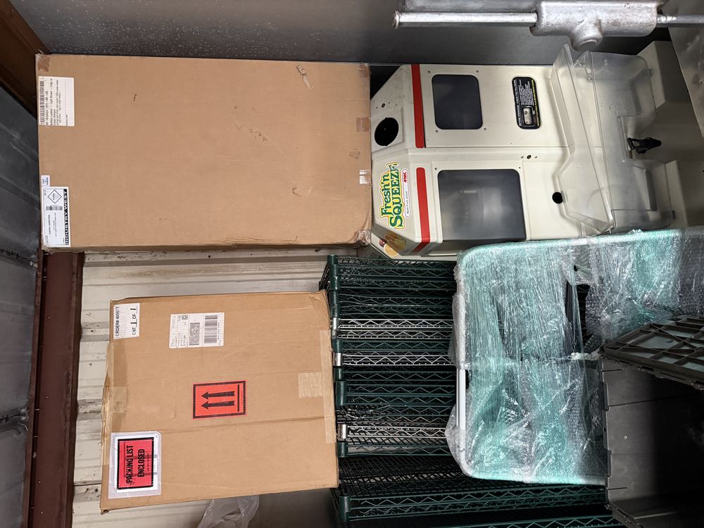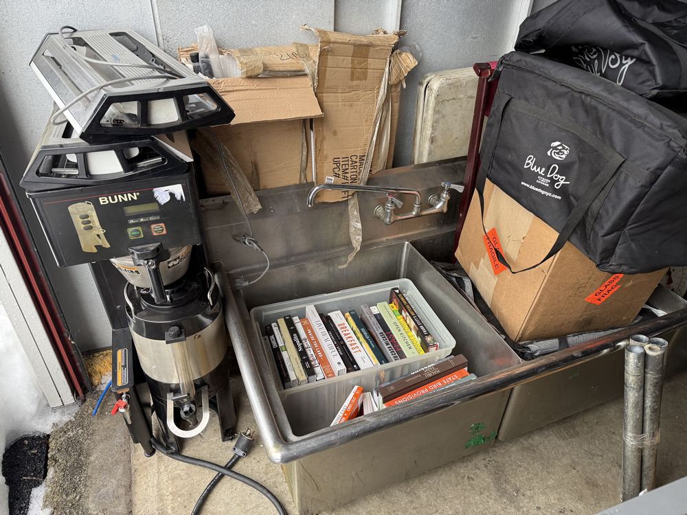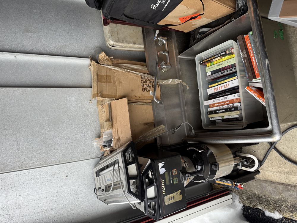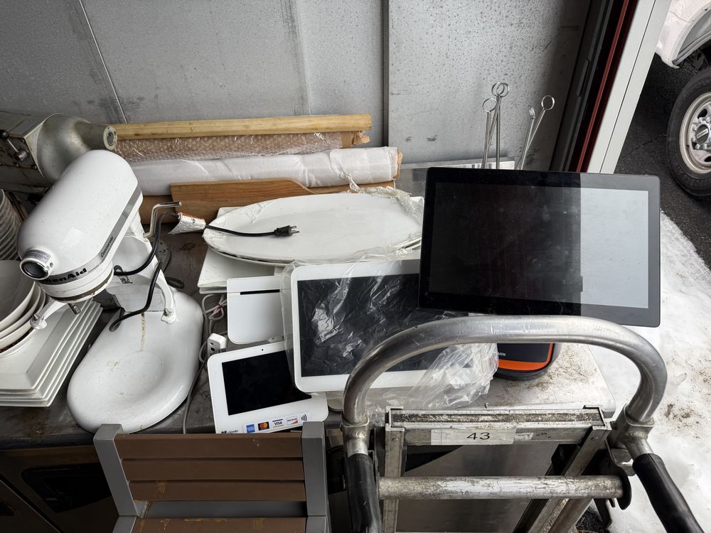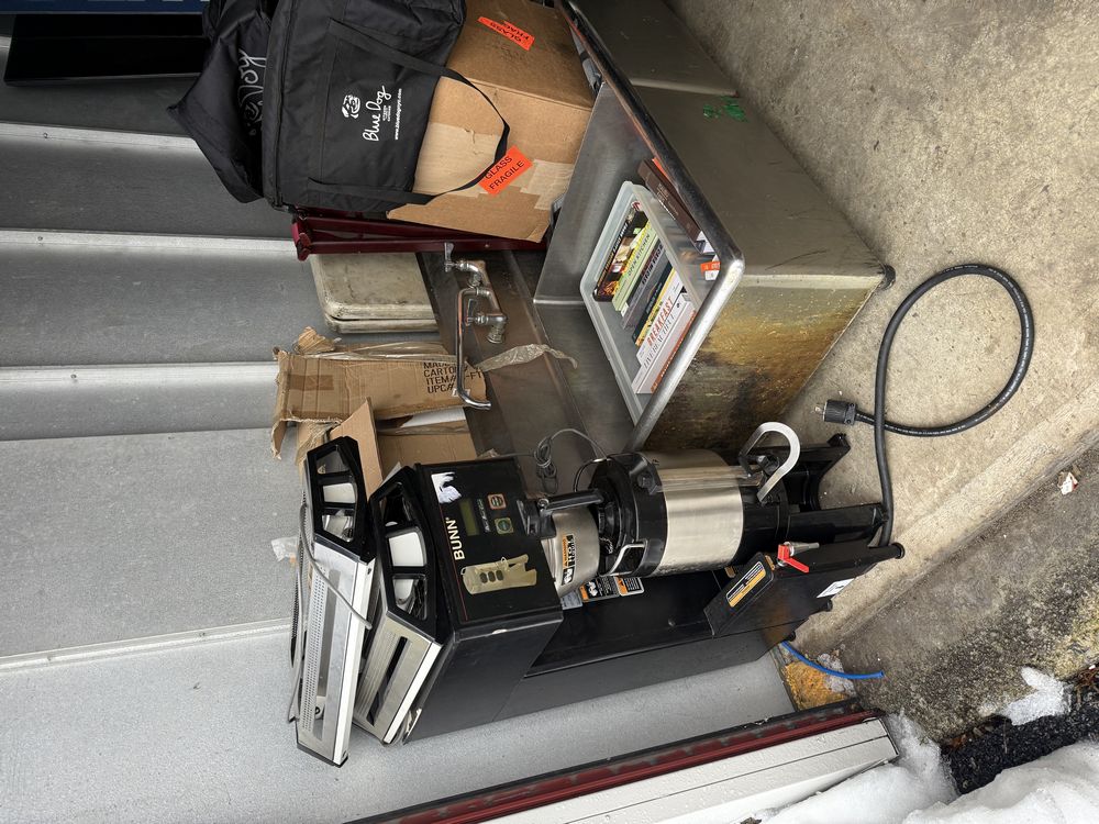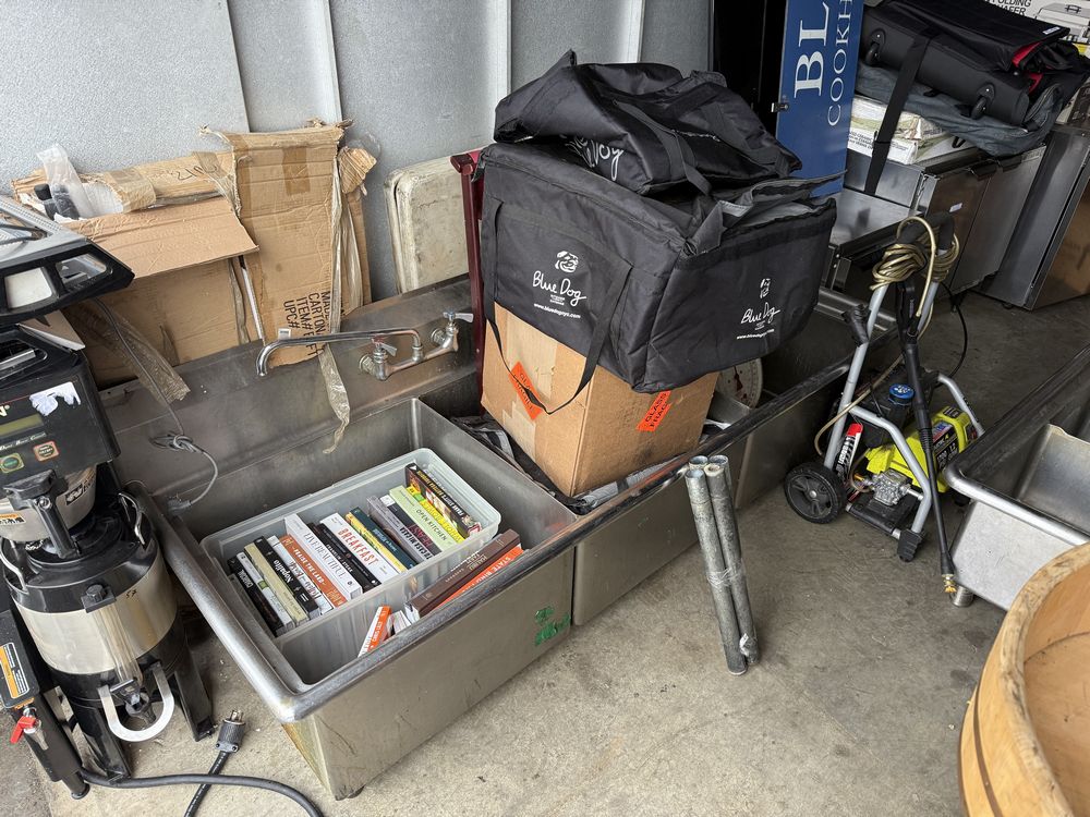 Contents of a 10' x 20' storage unit being sold by the storage unit owner. This storage unit contains Contents of closed down restaurant/cafe: includes Bunn coffee maker, stainless steel sinks, delivery bags, chairs, lights, shelves, plastic crates, cookbooks, Beverage Air UCR20Y fridge, Beverage Air UCR34Y Fridge, Delfield Undercounter fridge, Atosa Glass Door Fridge, Chafing Pans, FMC Fresh n Squeeze Juicer, Meat Saw, Pie Press, Adcraft Fryer, Cecilware Fryer, Mason Jars, Mugs, cream dispensers, plates, bowls, rice warmer, salad spinner, power washer, soup warmer, Hobart mixer, kitchen aid mixer, containers, POS system, ryobi pressure washer, Turbo Air TWR-72SD fridge and more. The functionality of electric/electronic items are unknown/not tested. The authenticity of items have not been verified or guaranteed on any/all items. Items are located in Wappingers Falls, NY.