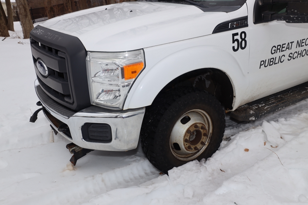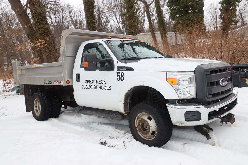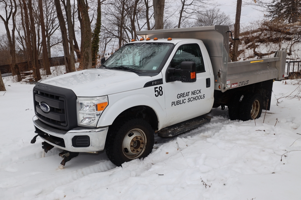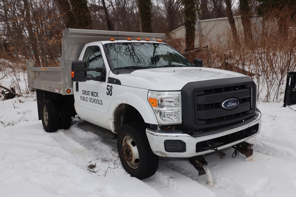 Items are 2014 Ford F-350 Super Duty dump truck & Up-Right one- person vertical lift. Items are located in Great Neck, NY.