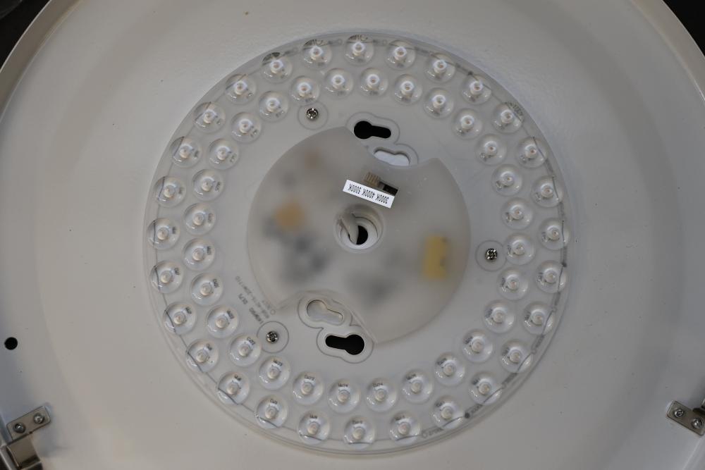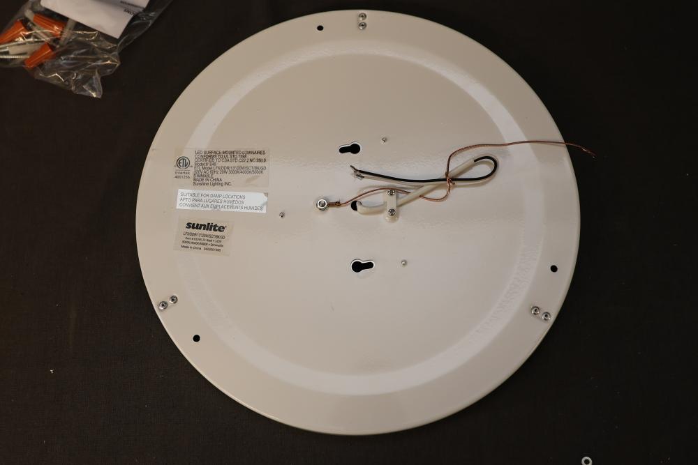 Sunlite 81045-SU LED Decorative Ceiling Fixture, 13 Inches, Black and Gold. Features 1000 lumens of brightness, consumes 20 watts of power, and includes a color tunable switch offering 3000K, 4000K, or 5000K color temperature options. ETL certified, dimmable, suitable for damp locations, and includes mounting hardware. Pickup only.