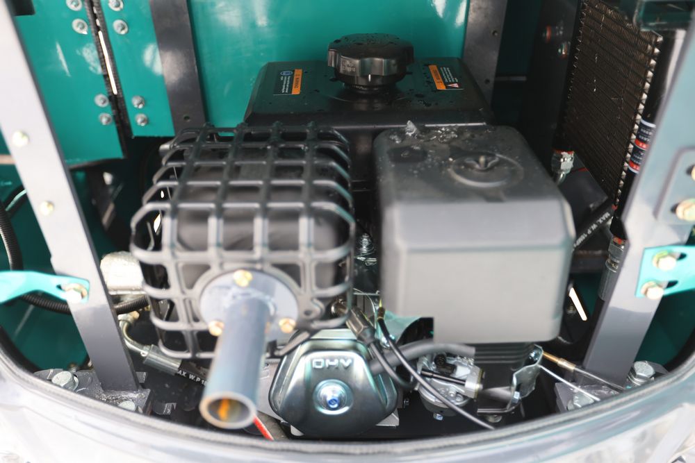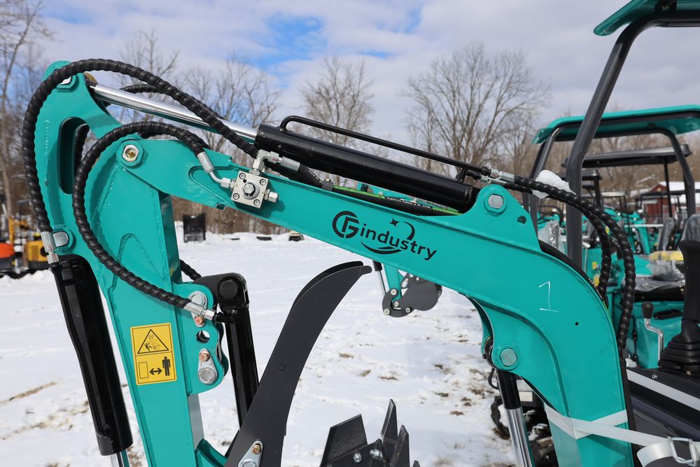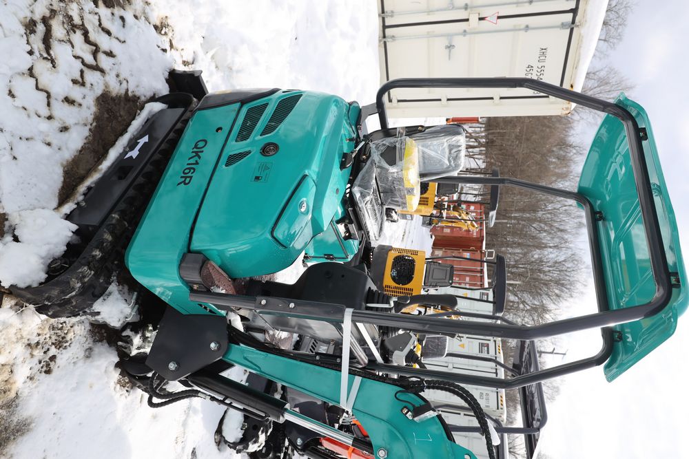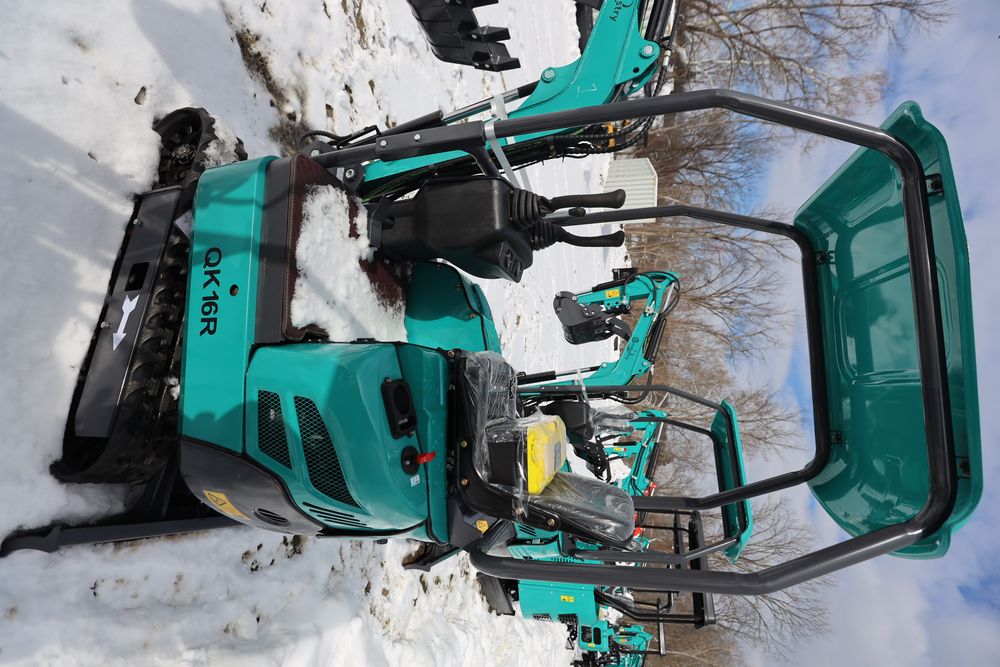 New 2025 CFG Industrial gas powered mini Excavator model QK16R with bucket, dozer blade, aux hydraulics, engine model R420, 920KG load, with canopy cover. Hours reading less than 1 hour.
