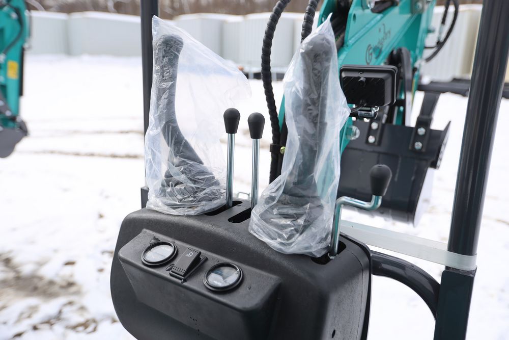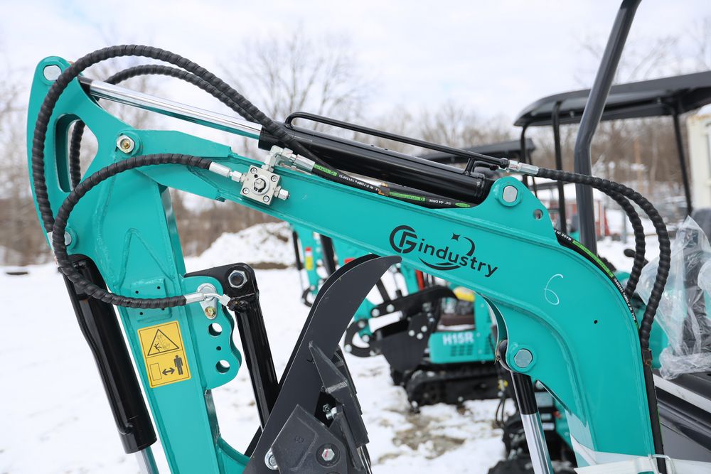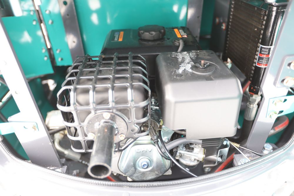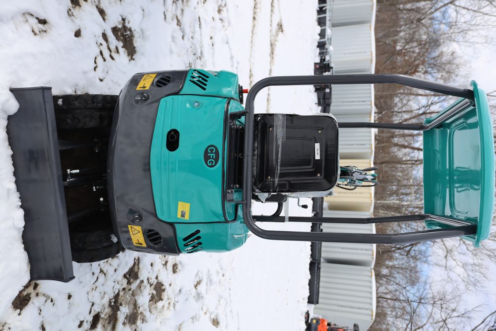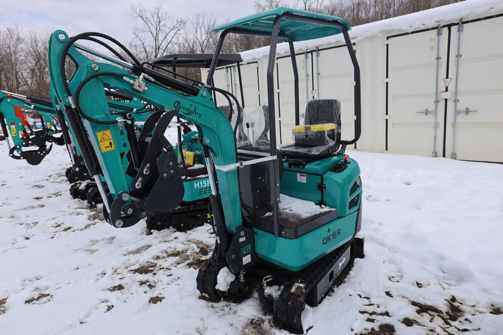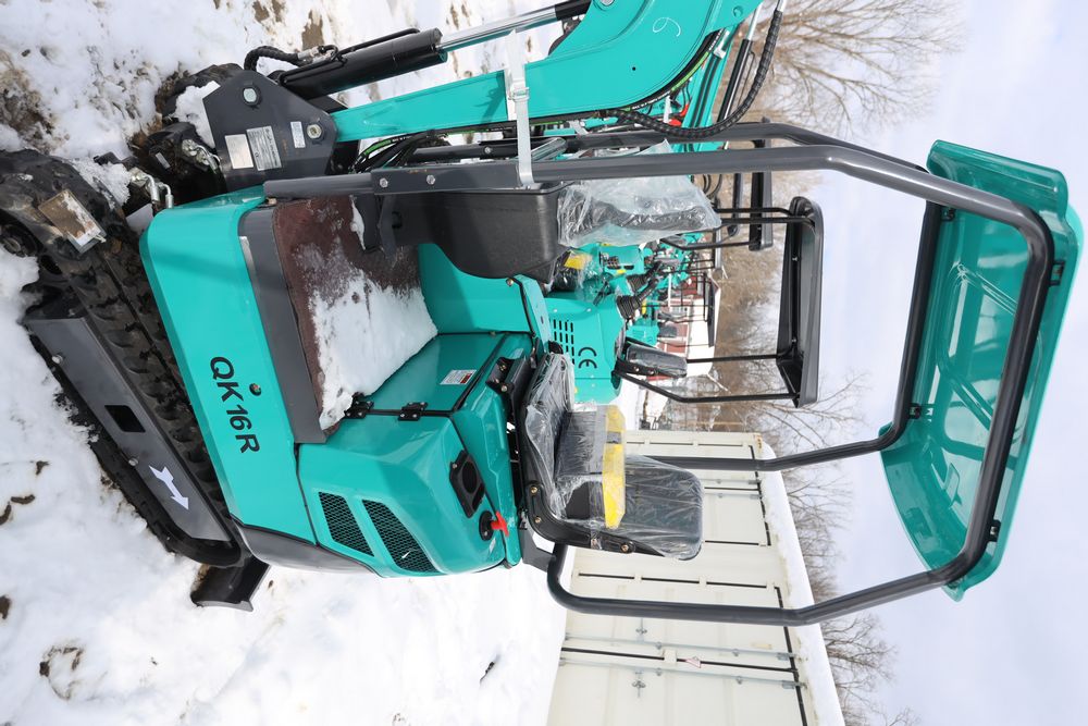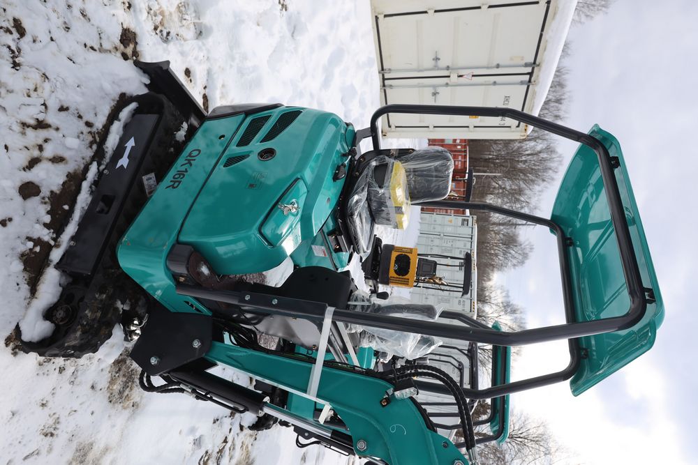New 2025 CFG Industrial gas powered mini Excavator model QK16R with bucket, dozer blade, aux hydraulics, engine model R420, 920KG load, with canopy cover. Hours reading less than 1 hour.