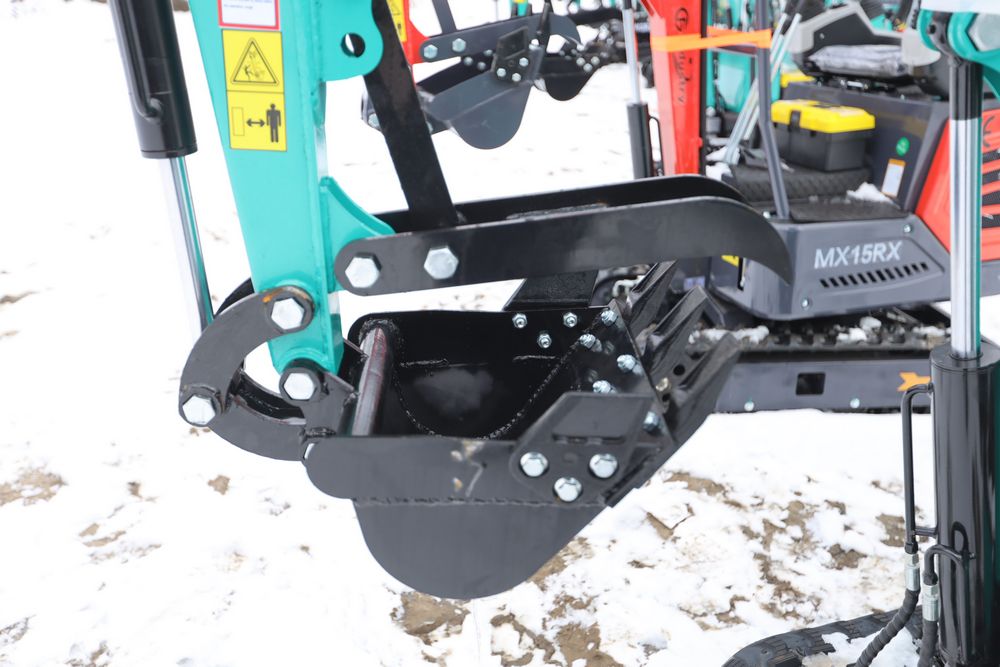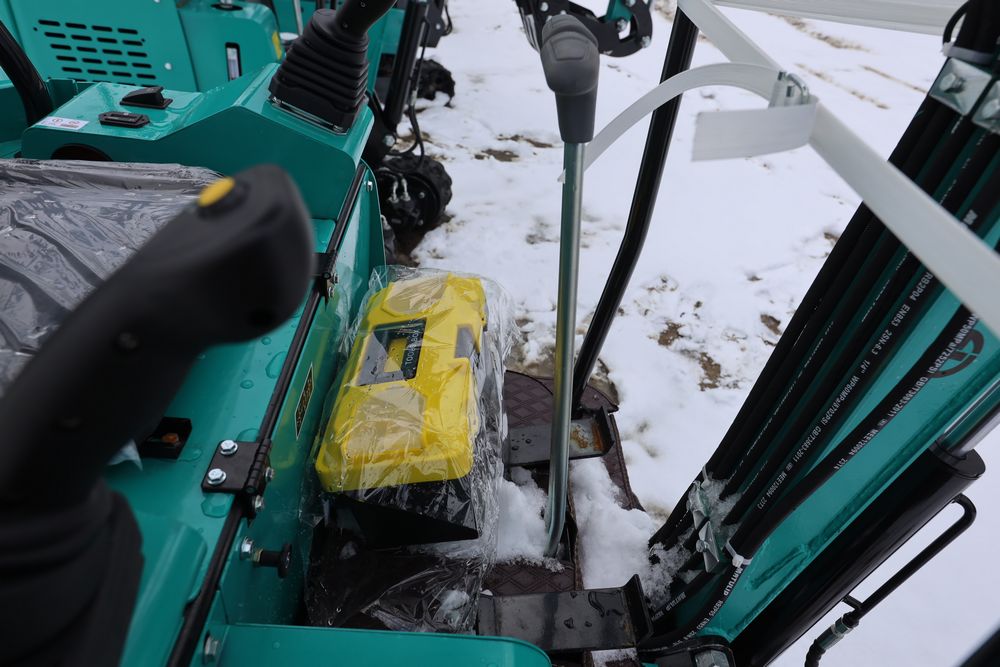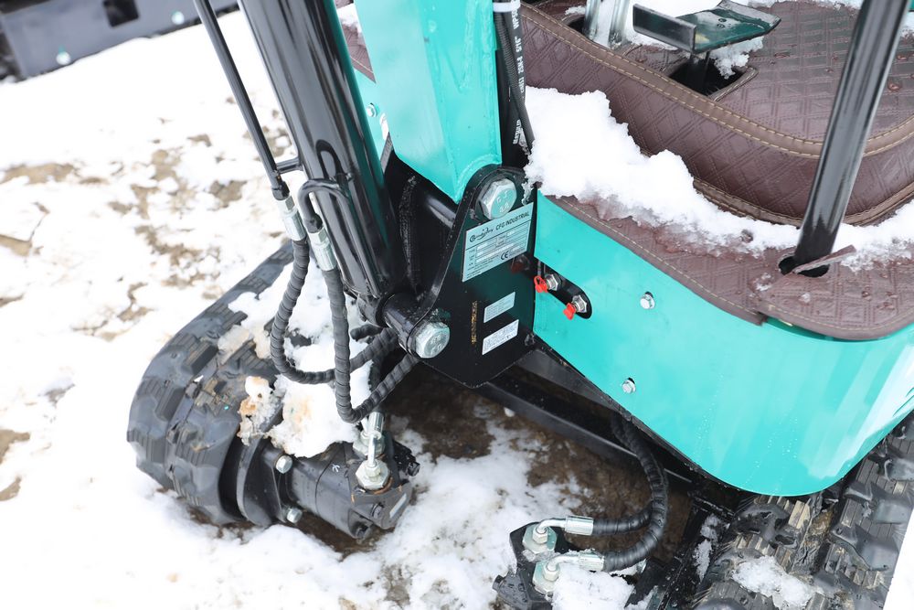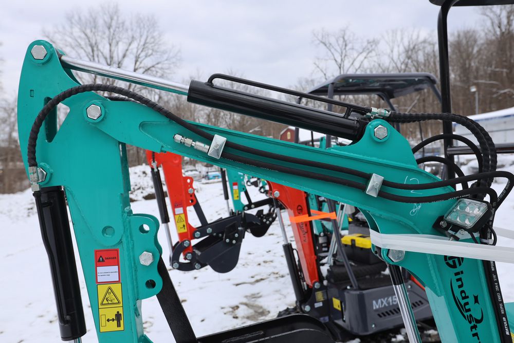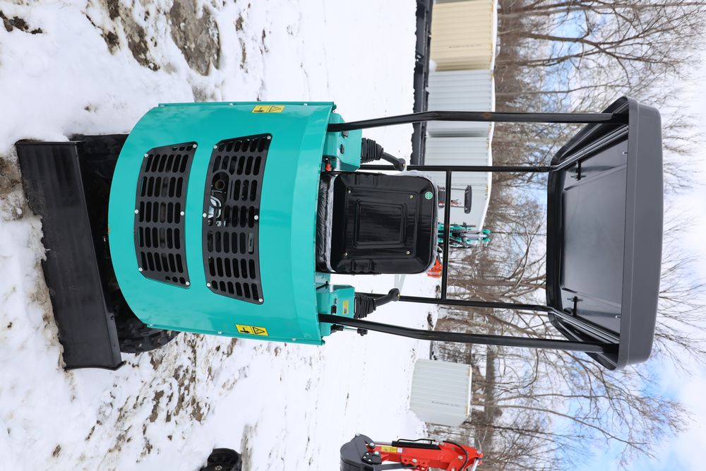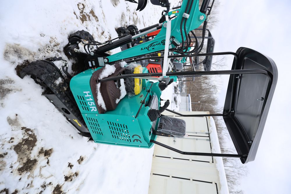 New 2026 CFG Industrial gas powered mini Excavator model H15R with 420cc gasoline engine, bucket, 4' long tracks, 38.5" wide base, 6" wide tracks, canopy, hydraulic boom & bucket controls, pilot system, thumb, dozer blade. Hours reading less than 1 hour.