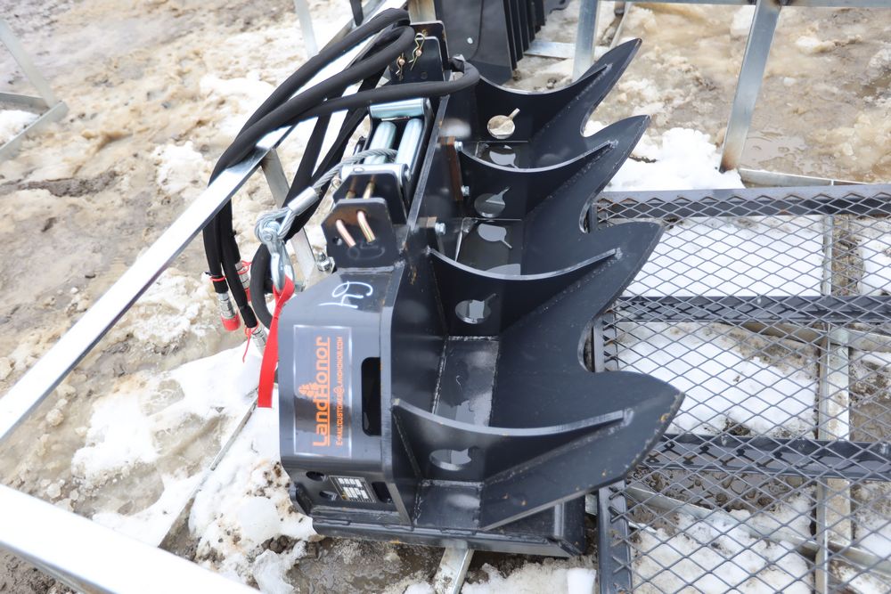 Items include new 2026 Landhonor skid steer bale spears, pallet fork, utility hitch adaptor, three-point hitch adapter, tree puller, six-way dozer blade, screening bucket; skid steer loader; 20,000lbs. electric winch; Big Arm backhoe; 200lbs. cast iron anvil; 65' retractable air hose reel; retractable garden hose; hydraulic shop press; 8'x10' galvanized metal shed; 1" impact wrench; diesel fuel transfer pump w/ 49' hose reel; folding stool; rolling pneumatic stool; telescoping ladder; foldable wagon cart; walk-in greenhouse; two-ton lift hand chair lever hoist & more. Items are located in Pleasant Valley, NY. Preview is highly recommended.