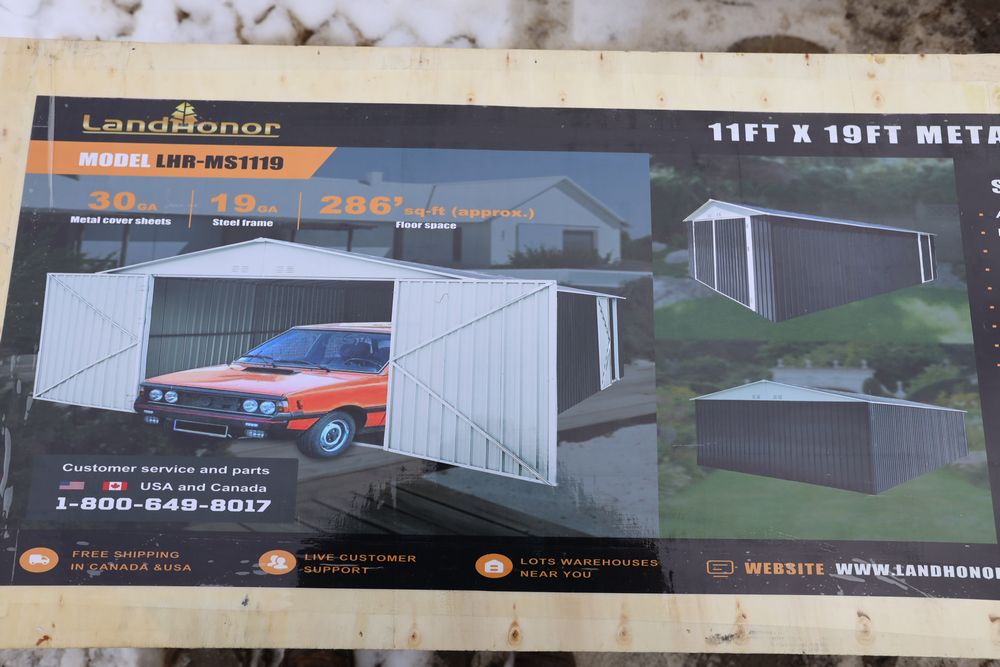 New 2026 Landhonor 11ft x 19ft Metal Garage Shed with Double Front Doors model LHR-MS1119.