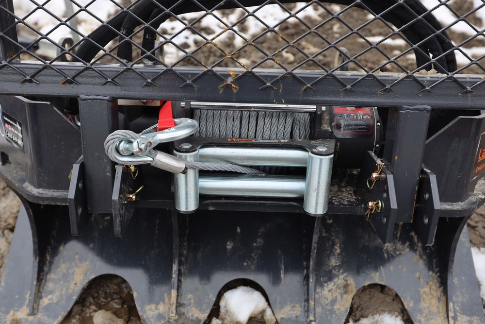Items include new 2026 Landhonor skid steer bale spears, pallet fork, utility hitch adaptor, three-point hitch adapter, tree puller, six-way dozer blade, screening bucket; skid steer loader; 20,000lbs. electric winch; Big Arm backhoe; 200lbs. cast iron anvil; 65' retractable air hose reel; retractable garden hose; hydraulic shop press; 8'x10' galvanized metal shed; 1" impact wrench; diesel fuel transfer pump w/ 49' hose reel; folding stool; rolling pneumatic stool; telescoping ladder; foldable wagon cart; walk-in greenhouse; two-ton lift hand chair lever hoist & more. Items are located in Pleasant Valley, NY. Preview is highly recommended.