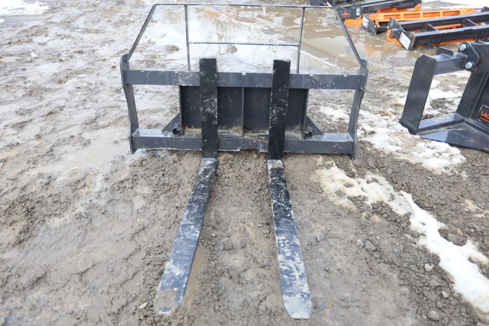 New 2026 Landhonor mini skid steer pallet fork attachment with bale spear holes, model MPF-11-2000G.