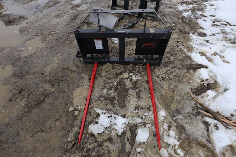 Items include new 2026 Landhonor skid steer bale spears, pallet fork, utility hitch adaptor, three-point hitch adapter, tree puller, six-way dozer blade, screening bucket; skid steer loader; 20,000lbs. electric winch; Big Arm backhoe; 200lbs. cast iron anvil; 65' retractable air hose reel; retractable garden hose; hydraulic shop press; 8'x10' galvanized metal shed; 1" impact wrench; diesel fuel transfer pump w/ 49' hose reel; folding stool; rolling pneumatic stool; telescoping ladder; foldable wagon cart; walk-in greenhouse; two-ton lift hand chair lever hoist & more. Items are located in Pleasant Valley, NY. Preview is highly recommended.