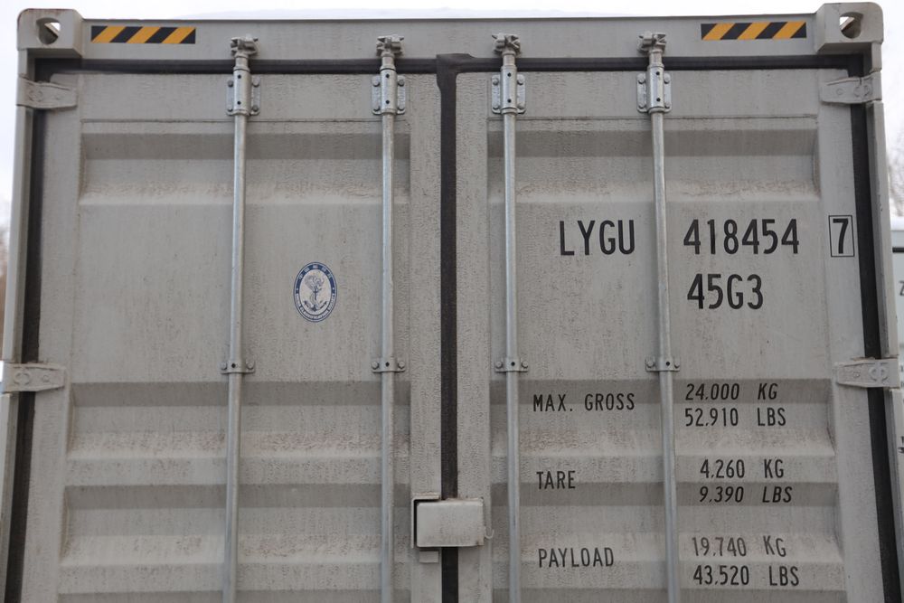 New 2026 40' High cube multi-door container, two side doors, one end door. Container# LYGU4184547.
