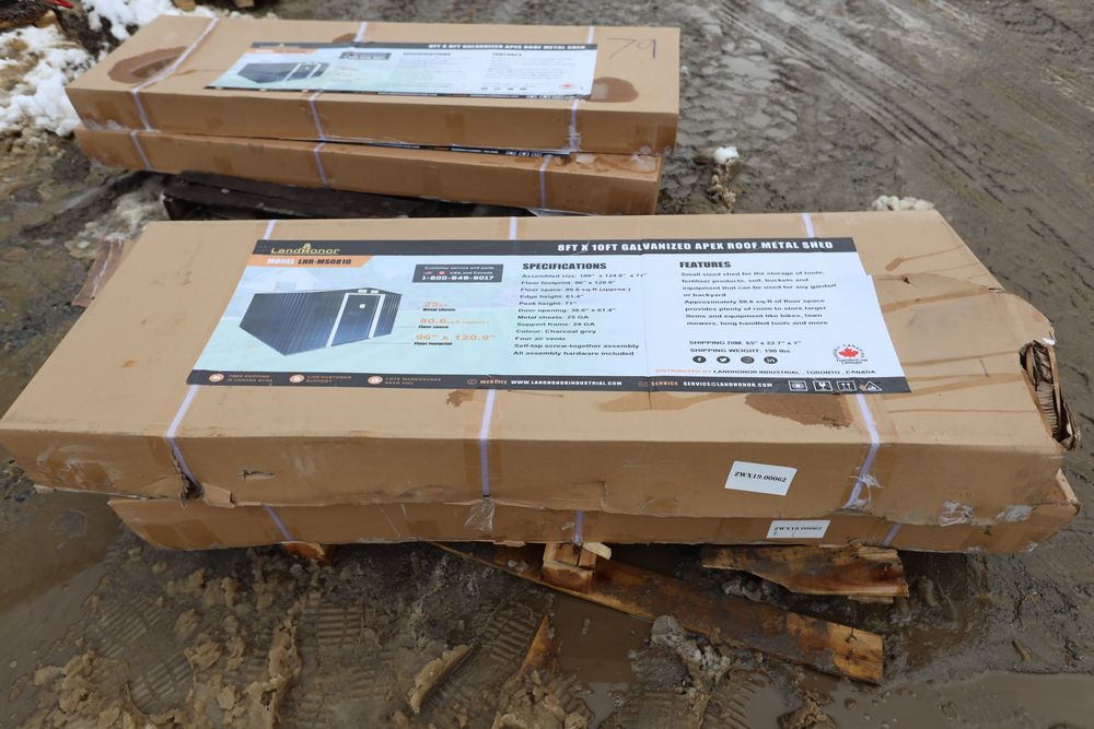 Items include new 2026 Landhonor skid steer bale spears, pallet fork, utility hitch adaptor, three-point hitch adapter, tree puller, six-way dozer blade, screening bucket; skid steer loader; 20,000lbs. electric winch; Big Arm backhoe; 200lbs. cast iron anvil; 65' retractable air hose reel; retractable garden hose; hydraulic shop press; 8'x10' galvanized metal shed; 1" impact wrench; diesel fuel transfer pump w/ 49' hose reel; folding stool; rolling pneumatic stool; telescoping ladder; foldable wagon cart; walk-in greenhouse; two-ton lift hand chair lever hoist & more. Items are located in Pleasant Valley, NY. Preview is highly recommended.