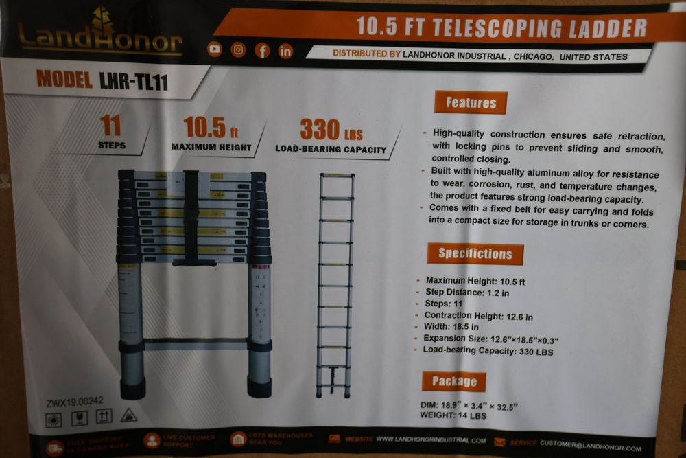 New 2026 Landhonor 10.5 Ft Telescoping Ladder model LHR-TL11.
