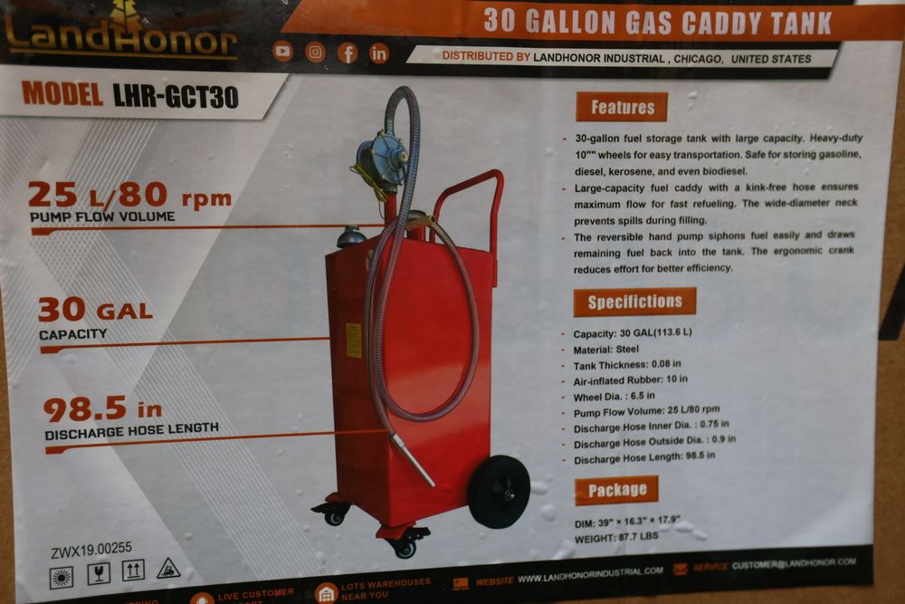 New 2026 Landhonor 30 Gallon Gas Tank Caddy model LHR-GCT30.