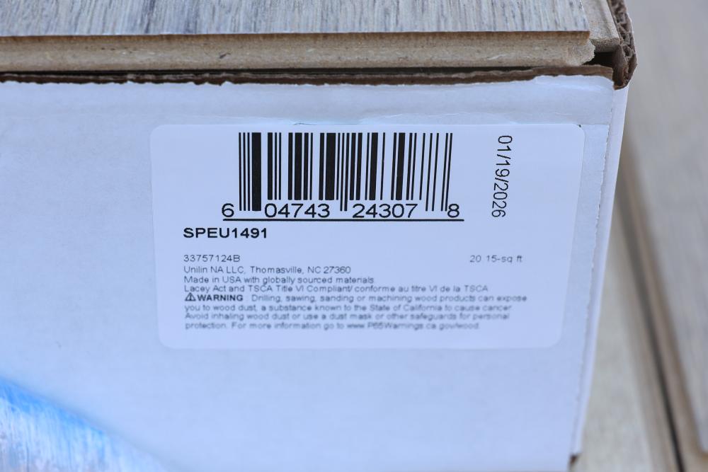 Lot is for 32 cartons of new laminate flooring. 20.15 square feet per carton. 644.80 total square feet. Manufacturer is Mohawk. Product is Pergo Timbercraft Dixon Oak. This product is Waterproof. Uni-Clic floating locking system. 2nd quality indicating some product may have minor imperfections such as markings, off-shade, blister/missing spot of wood grain, sample board. Sold by: Square Foot. Sold as: Price X Quantity. Sold by: Square Foot. Sold as: Price X Quantity.